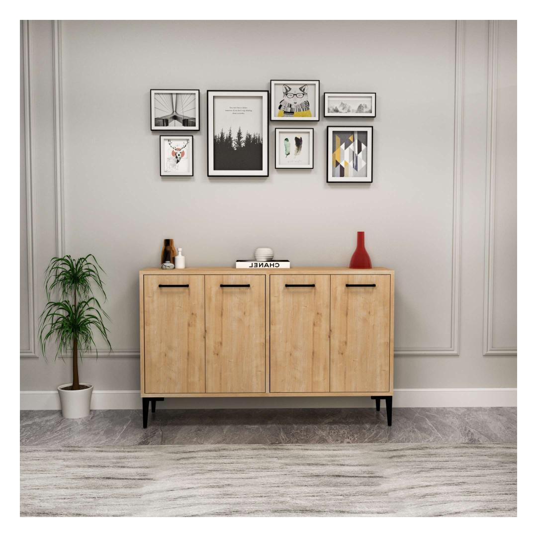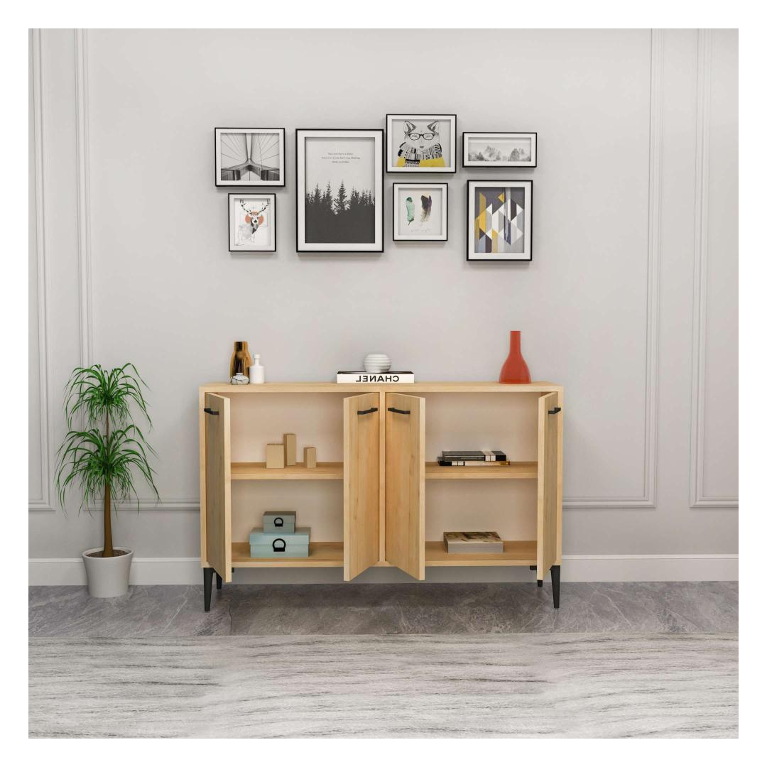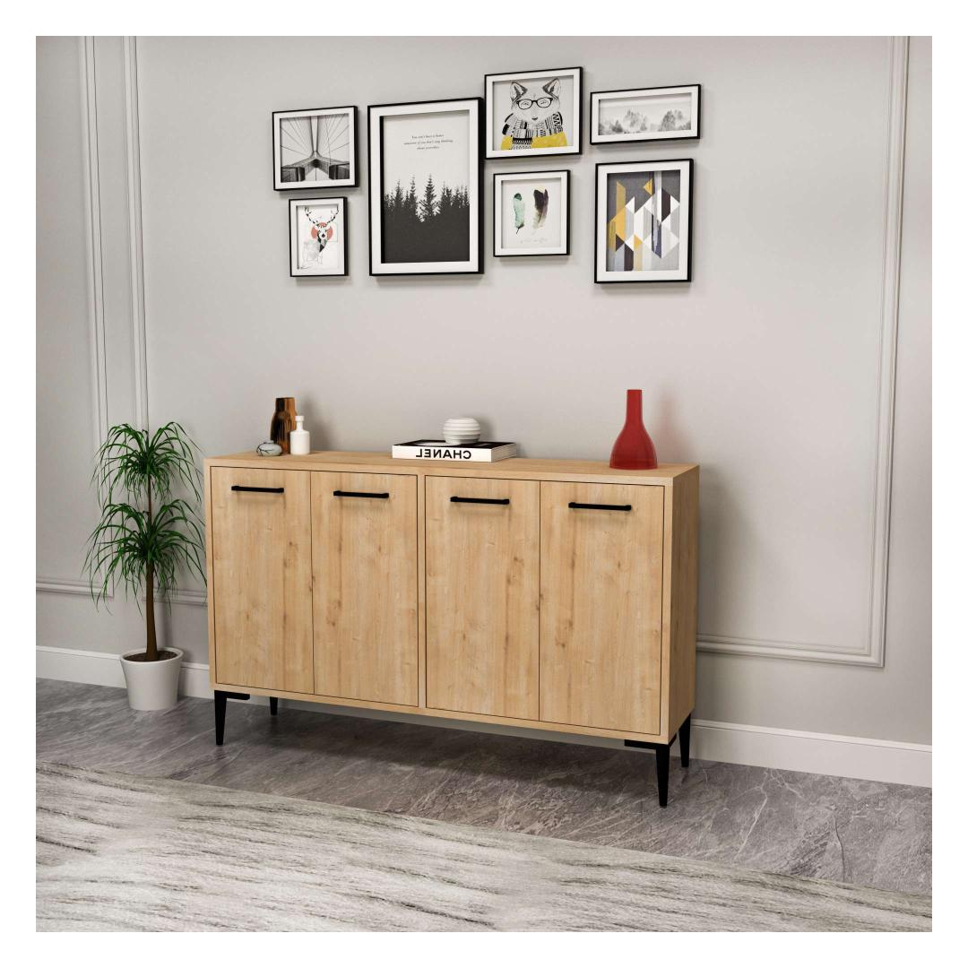 18 cm paksuse ja mõõtmetega 120 cm laius, 75 cm kõrgus ja 29,6 cm sügavus pakub see konsool piisavalt hoiuruumi kõigi sinu oluliste asjade jaoks. 15 cm jalakõrgus lisab kogu välimusele natuke rafineeritust.