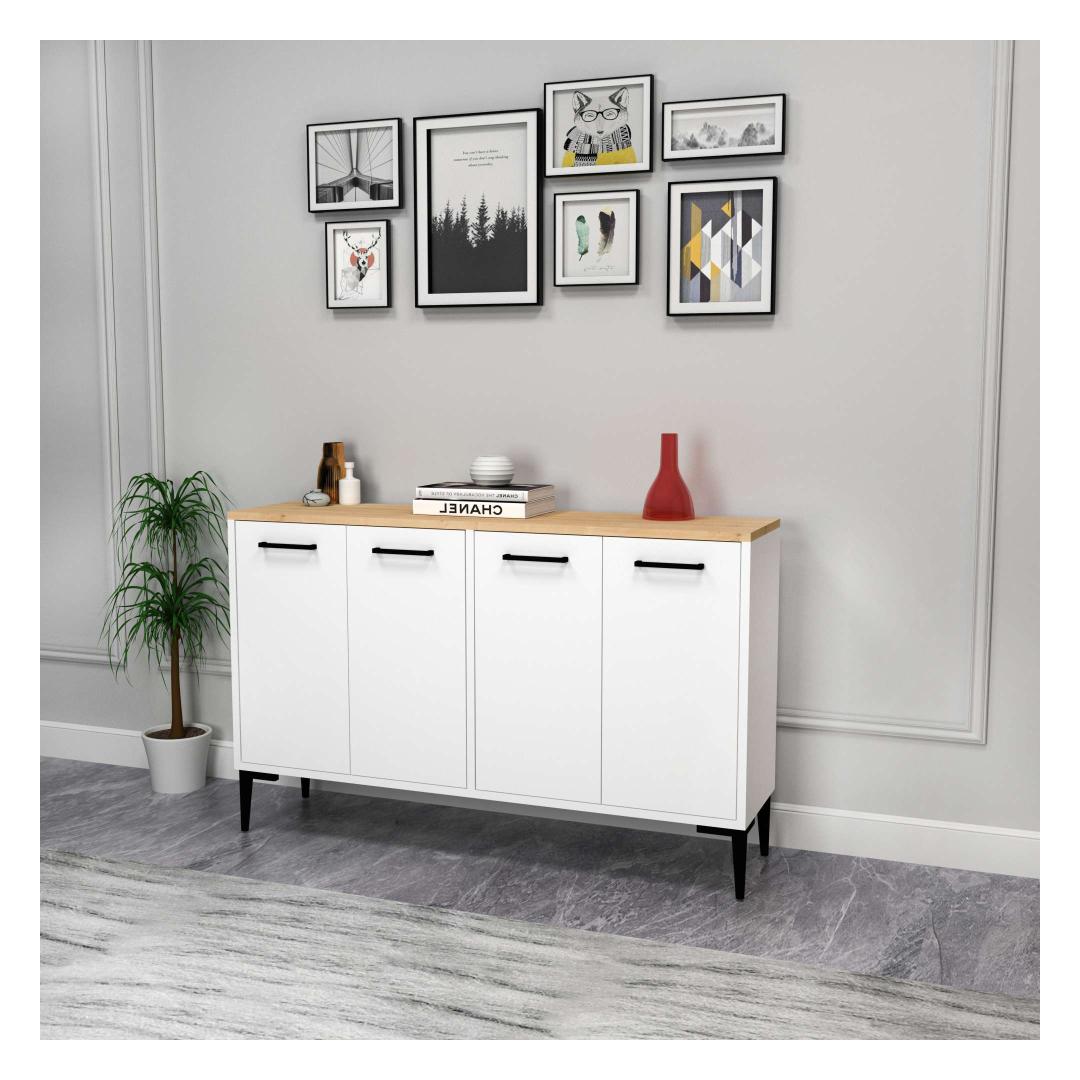 Valmistatud kvaliteetsest melamiiniga kaetud puitlaastplaadist, on see konsool loodud kestma. Tugev konstruktsioon tagab vastupidavuse ja stabiilsuse, samas kui sujuv viimistlus lisab teie ruumile luksuse puudutuse.