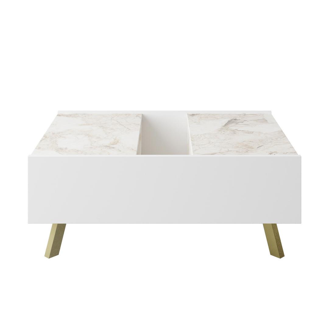 Kohvilaud on kujundatud ilusat valget värvi, lisades teie eluruumile elegantsi ja elegantsust. Puhas valge toon täiendab vaevata mis tahes sisekujundust, muutes selle mitmekülgseks valikuks igasse koju.