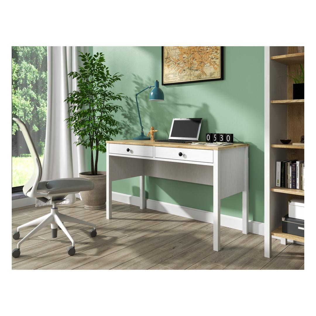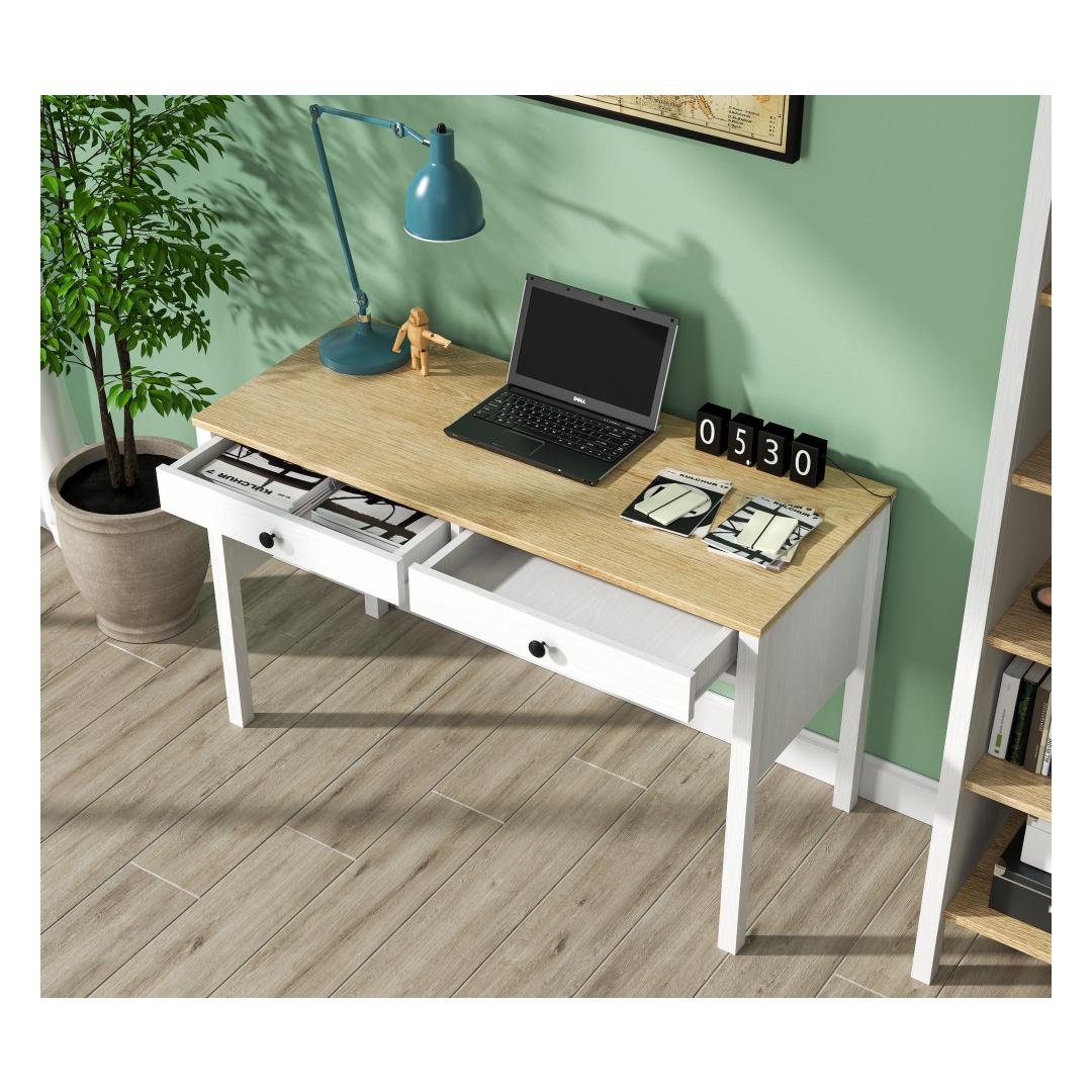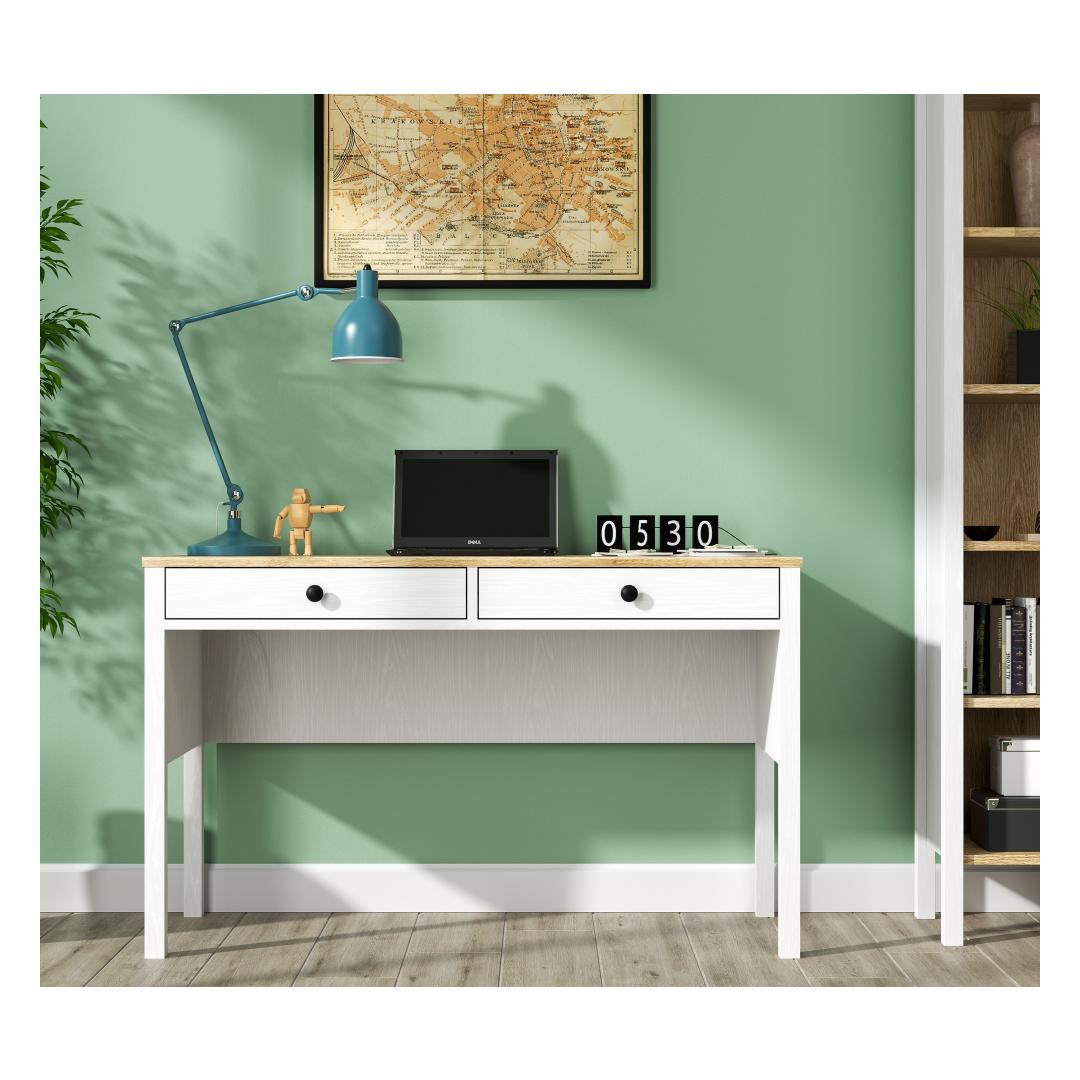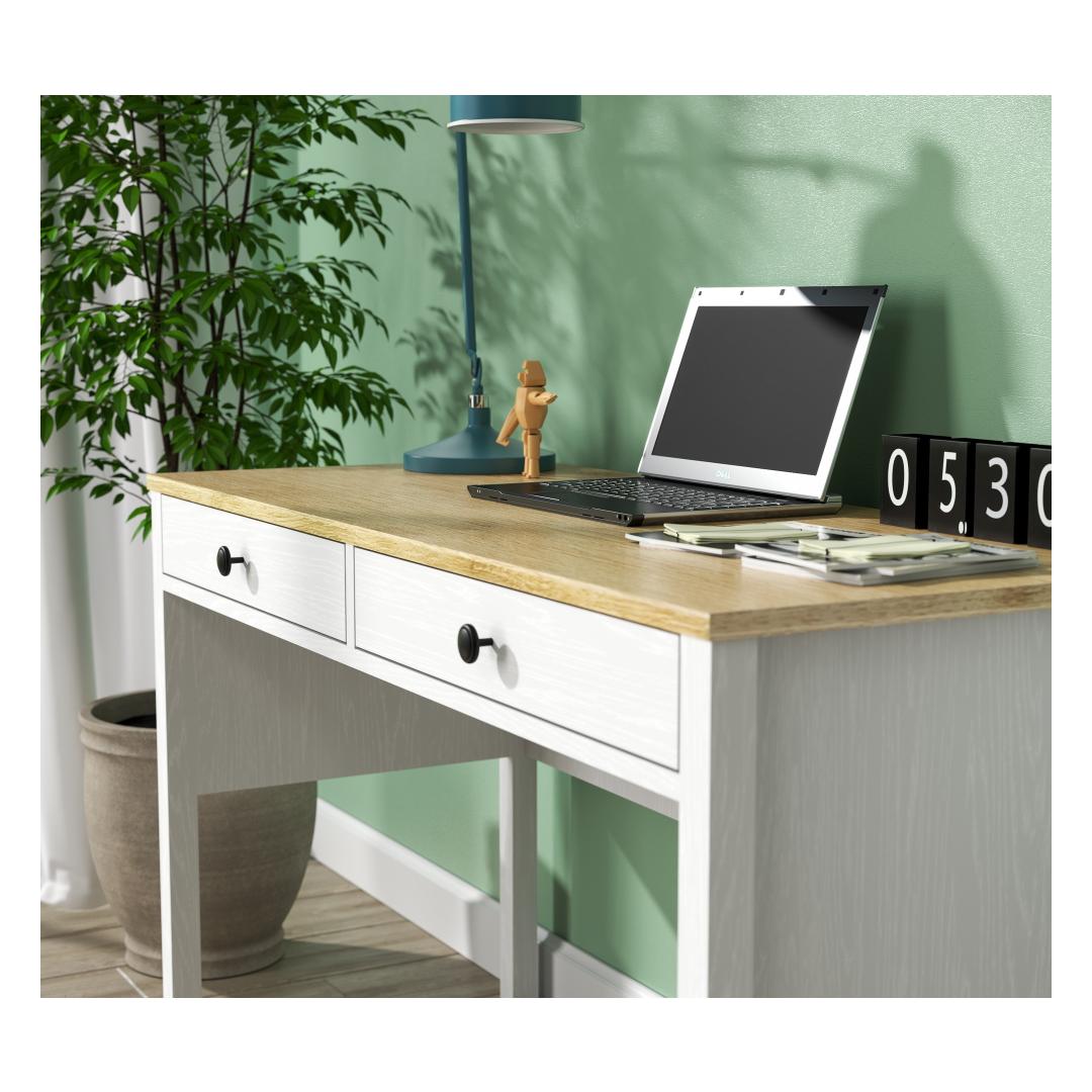 Muuda oma õpingute ruum produktiivsuse pühamuks meie kauni õpingute laua abil. Valmistatud 100% melamiinkattega puitlaastplaadist, on see laud mitte ainult vastupidav, vaid kiirgab ka elegantsi ja rafineeritust. Sujuv disain, millel on MDF-profiiliga jalad ja metallist käepidemed, lisab igasse ruumi modernse puudutuse.