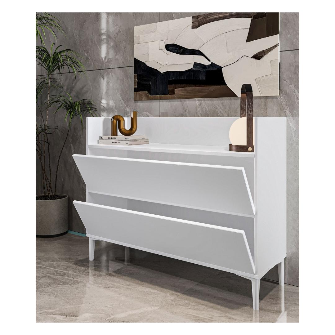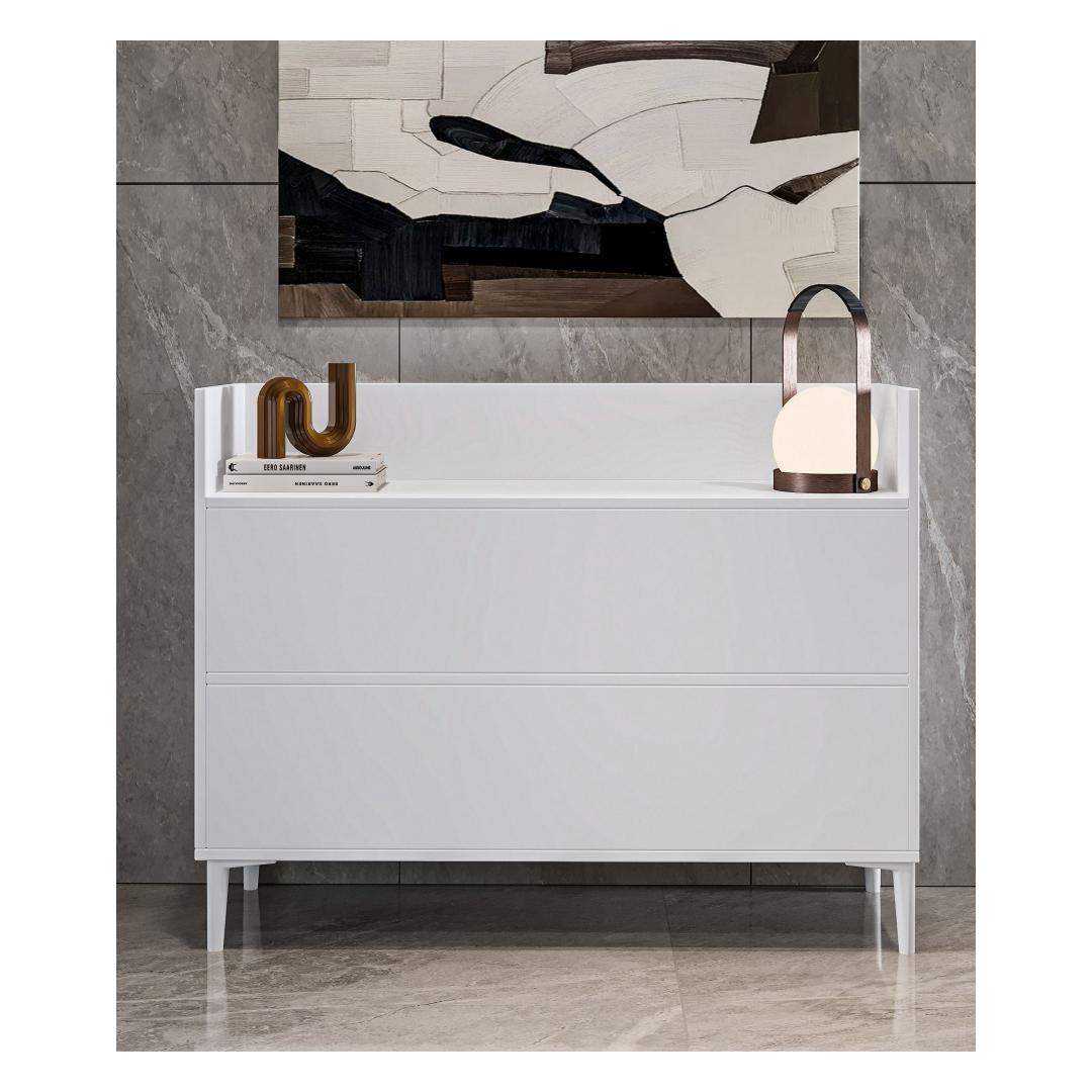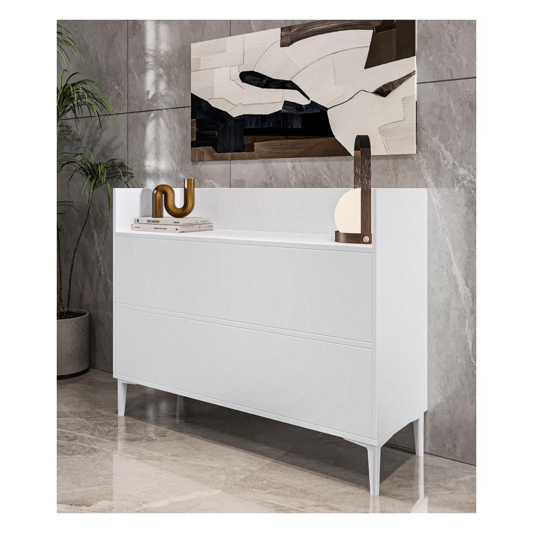 Kas oled väsinud segadusest ja korraldamatusest oma kodus? Ära vaata kaugemale kui meie mitmeotstarbeline kapp! See kaunis ja funktsionaalne mööbliese lisab igasse ruumi stiili ning pakub sulle piisavalt hoiuruumi, et hoida oma asjad korras ja puhtana.Korralda oma ruum stiilseltÜtle hüvasti segastele tubadele ja tere puhtale ning korraldatud eluruumile meie mitmeotstarbelise kapiga. Selle voolujooneline disain ja kaasaegne valge värv sulanduvad vaevata igasse sisustustüüpi, lisades sinu koju elegantsi.Kvaliteetne käsitööValmistatud 100% melamiinkattega puitlaastplaadist, on see kapp mitte ainult vastupidav ja pikaealine, vaid ka lihtne puhastada ja hooldada. 18mm paksus tagab, et see mööbliese on tugev ja suudab kergesti hoida kõiki sinu olulisi asju.Piisavalt hoiuruumiLaienedes 110 cm, kõrgus 85 cm ja sügavus 36,4 cm, pakub see kapp piisavalt ruumi kõigi sinu asjade jaoks. Olgu need raamatud, riided või kodutarbed, see kapp katab kõik sinu vajadused.Tehnilised andmed:Materjal: 100% melamiinkattega puitlaastplaatPaksus: 18mmLaienemine: 110cmKõrgus: 85cmSügavus: 36.4cmVärv: Valge Värv: White