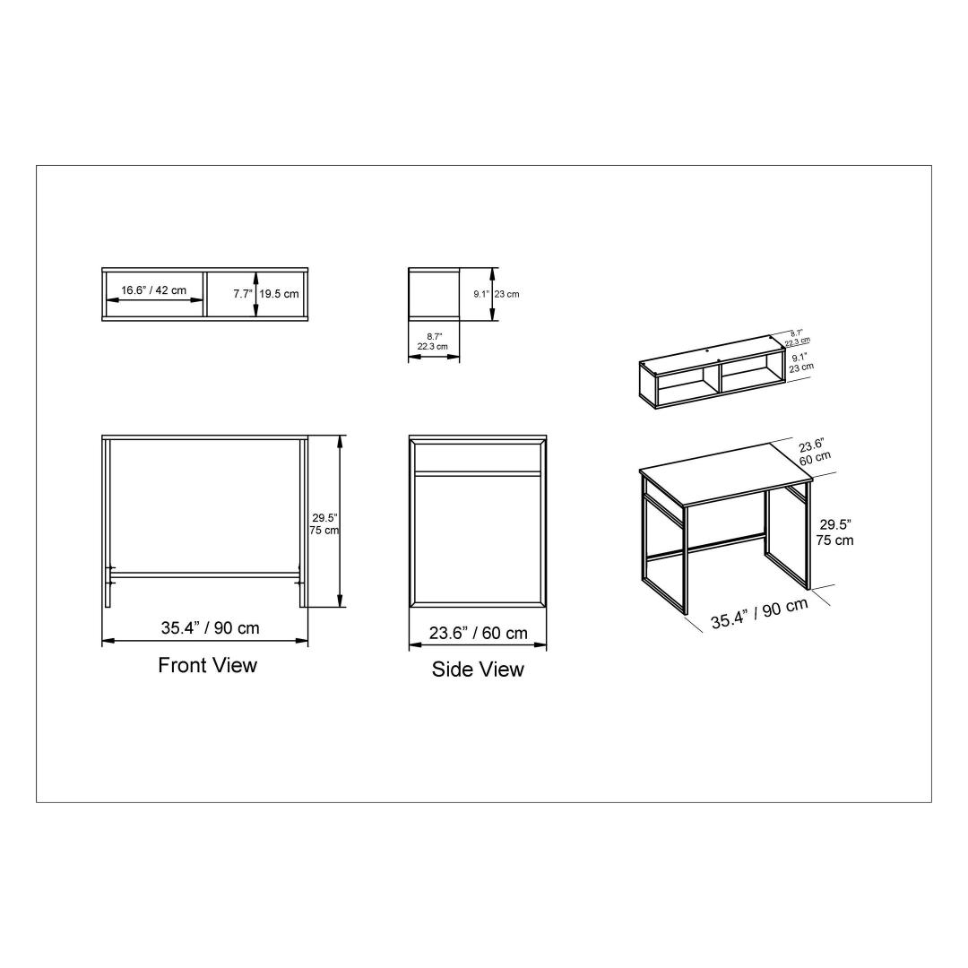 90 cm laiuse, 75 cm kõrguse ja 60 cm sügavusega töölaud pakub piisavalt ruumi kõigile teie õppetööks vajalikele asjadele. Kas vajate ruumi sülearvuti, raamatute või kirjatarvete jaoks, see töölaud on teile igati sobilik. Lisaks pakub 90 cm laiune, 22,3 cm kõrgune ja 23 cm sügavune seinariiul täiendavat hoiuruumi raamatute või dekoratiivsete esemete jaoks.