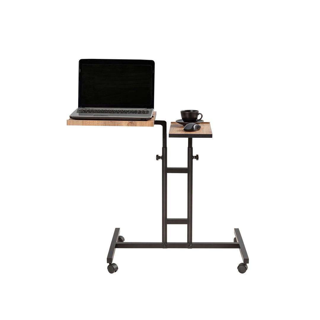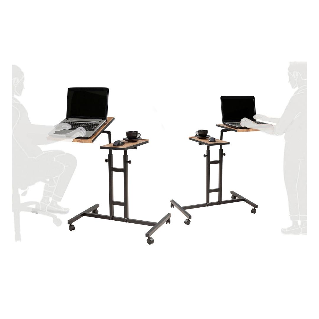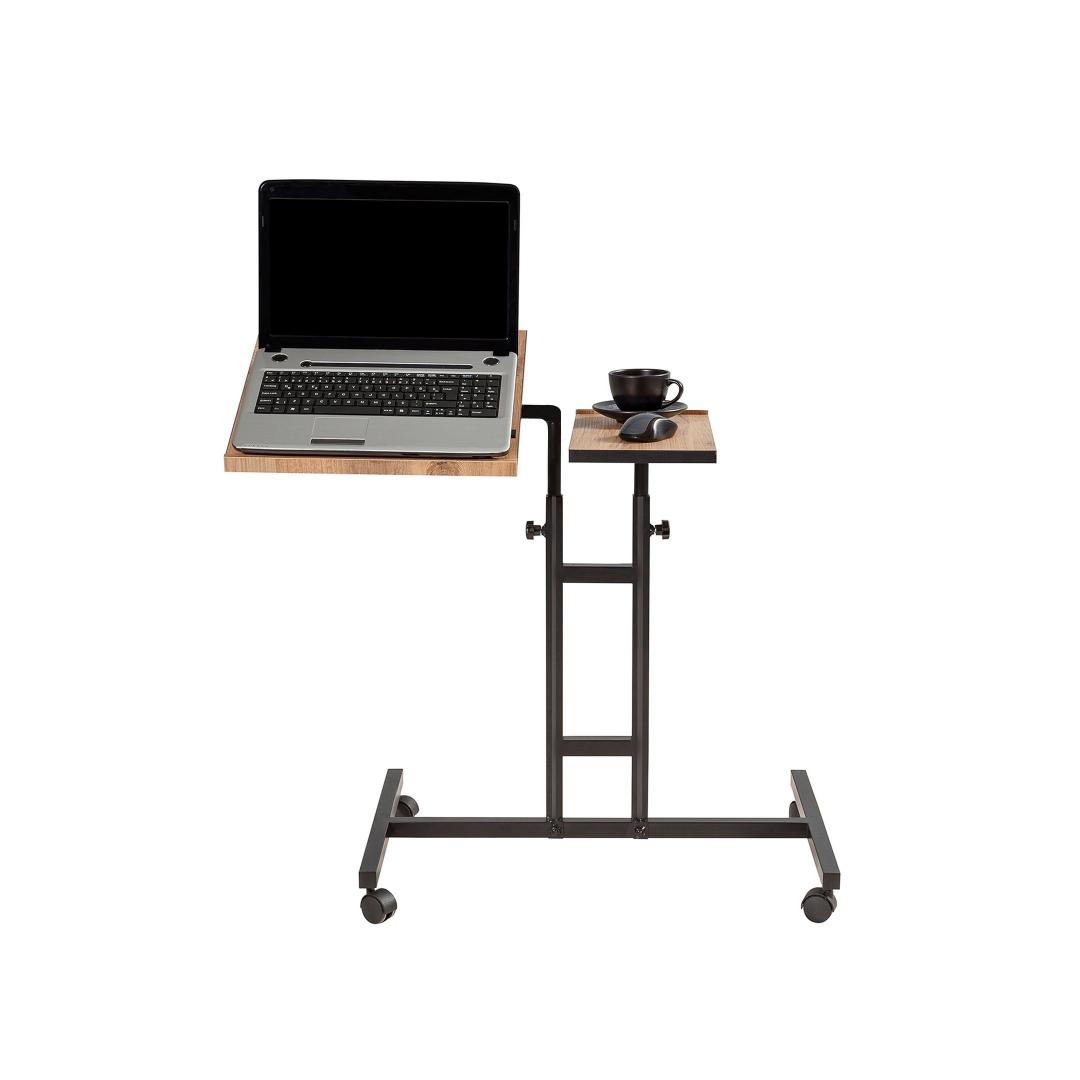 Reguleeritava kõrguse ja kallakuga sülearvuti töölaud võimaldab teil leida teie mugavusele sobivaima ergonoomilise asendi. Ratastega jalad muudavad liiklemise lihtsaks, samas kui täiendav panipaik pakub mugavat ruumi, kus saate oma hädavajalikke asju organiseeritult hoida.