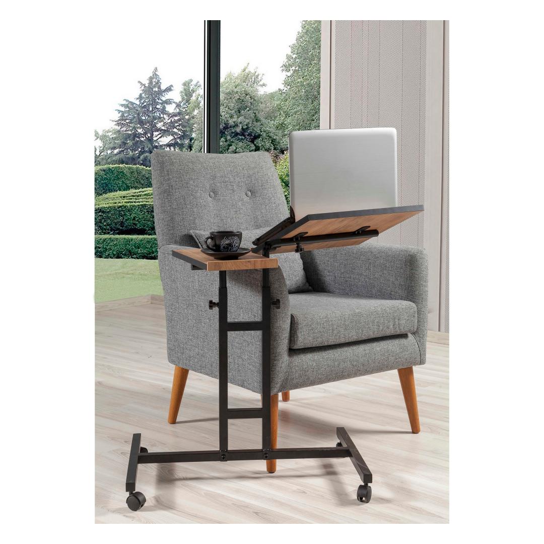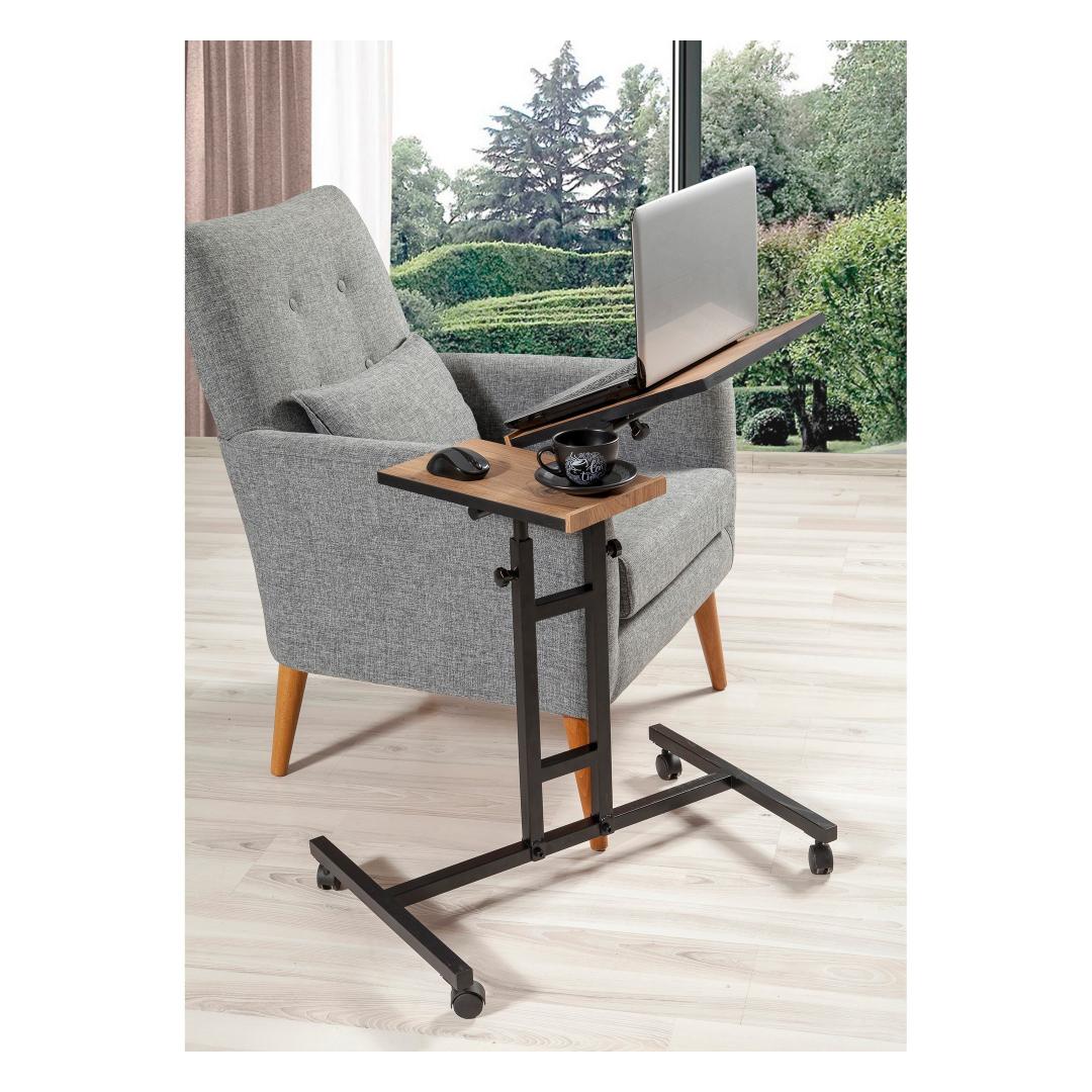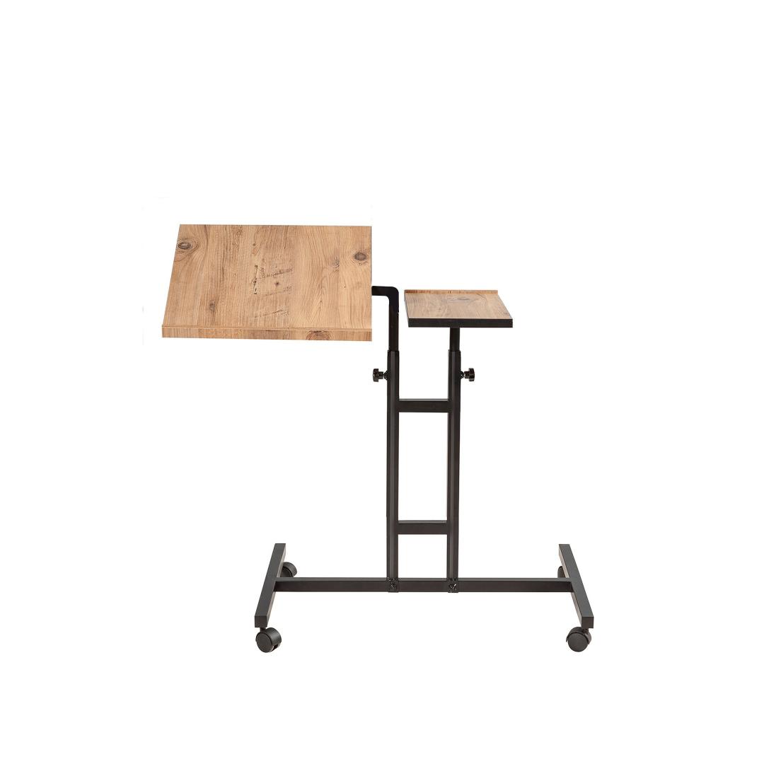 Reguleeritava kõrguse ja kallakuga sülearvuti töölaud võimaldab teil leida teie mugavusele sobivaima ergonoomilise asendi. Ratastega jalad muudavad liiklemise lihtsaks, samas kui täiendav panipaik pakub mugavat ruumi, kus saate oma hädavajalikke asju organiseeritult hoida.