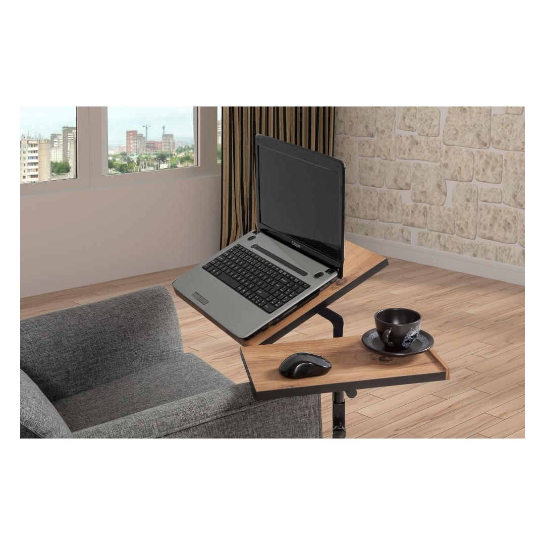 Tänu oma elegantsele ja modernsele disainile sulandub meie sülearvuti seisupult sujuvalt igasse tööruumi, lisades sellele elegantsi. See 100% melamiiniga kaetud puitlaastplaadist valmistatud laud ei ole mitte ainult vastupidav, vaid ka kriimustuste ja plekkide suhtes vastupidav, tagades selle pikaealisuse. Metallraam lisab stabiilsust ja tugevust, mistõttu on see võimeline kandma kuni 8 kg raskust.