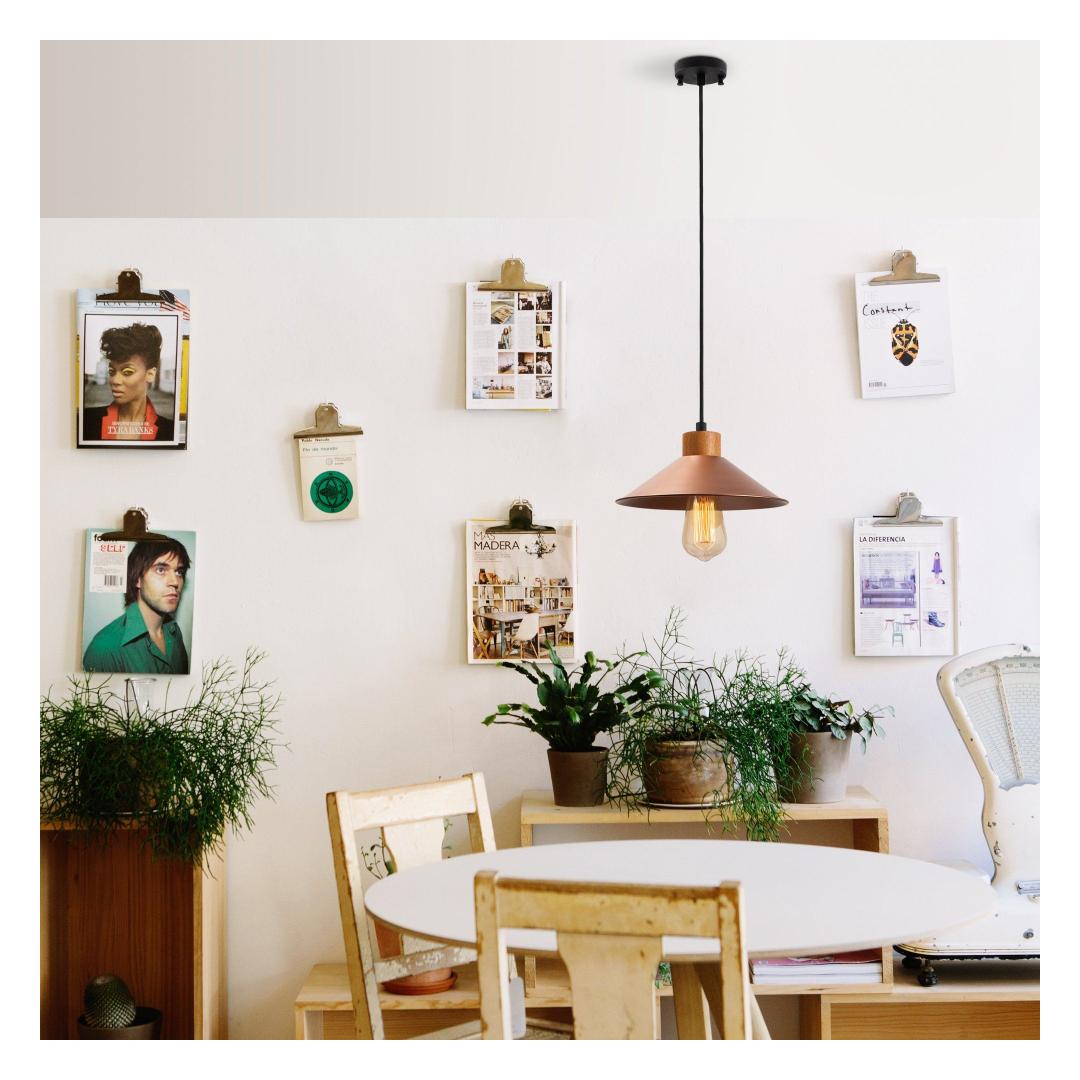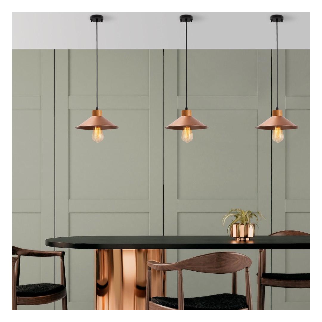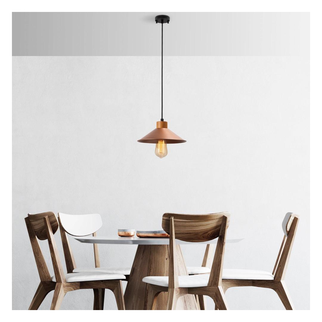 Valgustage oma kodu meie kauni vasklühtriga. See erakordne ese lisab igasse ruumi elegantsi ja rafineeritust, luues sooja ja kutsuva atmosfääri, mis jätab teie külalised imetlema.Elegants ja stiilMetallkeha ja puidust aluse kombinatsioon annab sellele lühtrile ainulaadse ja stiilse välimuse, mis täiendab igasugust sisustust. Vaskvärv lisab luksuse ja sära, muutes selle teie kodu ideaalseks silmapaistvaks elemendiks.Reguleeritav ja mitmekülgneReguleeritava kõrguse ja 90 cm pikkuse kaabliga saate selle lühtri hõlpsasti kohandada, et see sobiks teie ruumi ideaalselt. Olgu see siis madalalt söögilaua kohal või kõrgemal elutoas, see lühter loob fookuspunkti, mis muljet avaldab kõigile, kes seda näevad.Tehnilised andmed:Suurus: 103 x 24 cmKõrgus: 103 cmKorki diameeter: 24 cmKorki kõrgus: 9 cmPõhja plaadi diameeter: 10 cmPõhja plaadi kõrgus: 3 cmKaabli pikkus: 90 cmPesade tüüp: E 27 Max 40 WIP kood: IP20Värv: Vask Värv: Copper