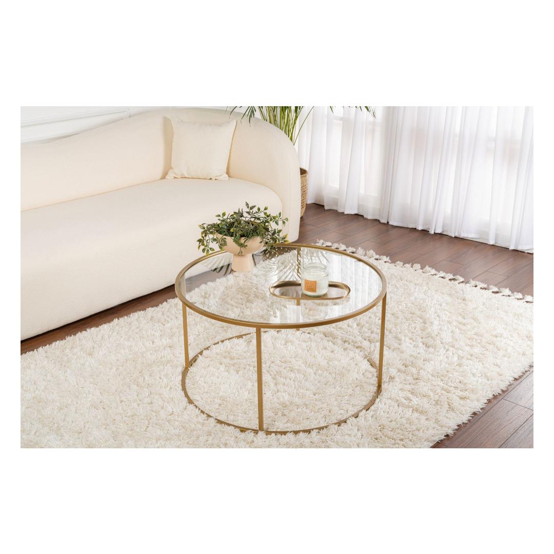 Tõsta oma eluruumi meie kauni kuldse kohvilaudadega. Valmistatud 100% karastatud klaasist ja stiilsest metallraamist, kiirgab see kohvilaud elegantsi ja rafineeritust. Kuldne viimistlus lisab luksuse puudutuse, muutes selle ideaalseks keskpunktiks igas modernses kodus.