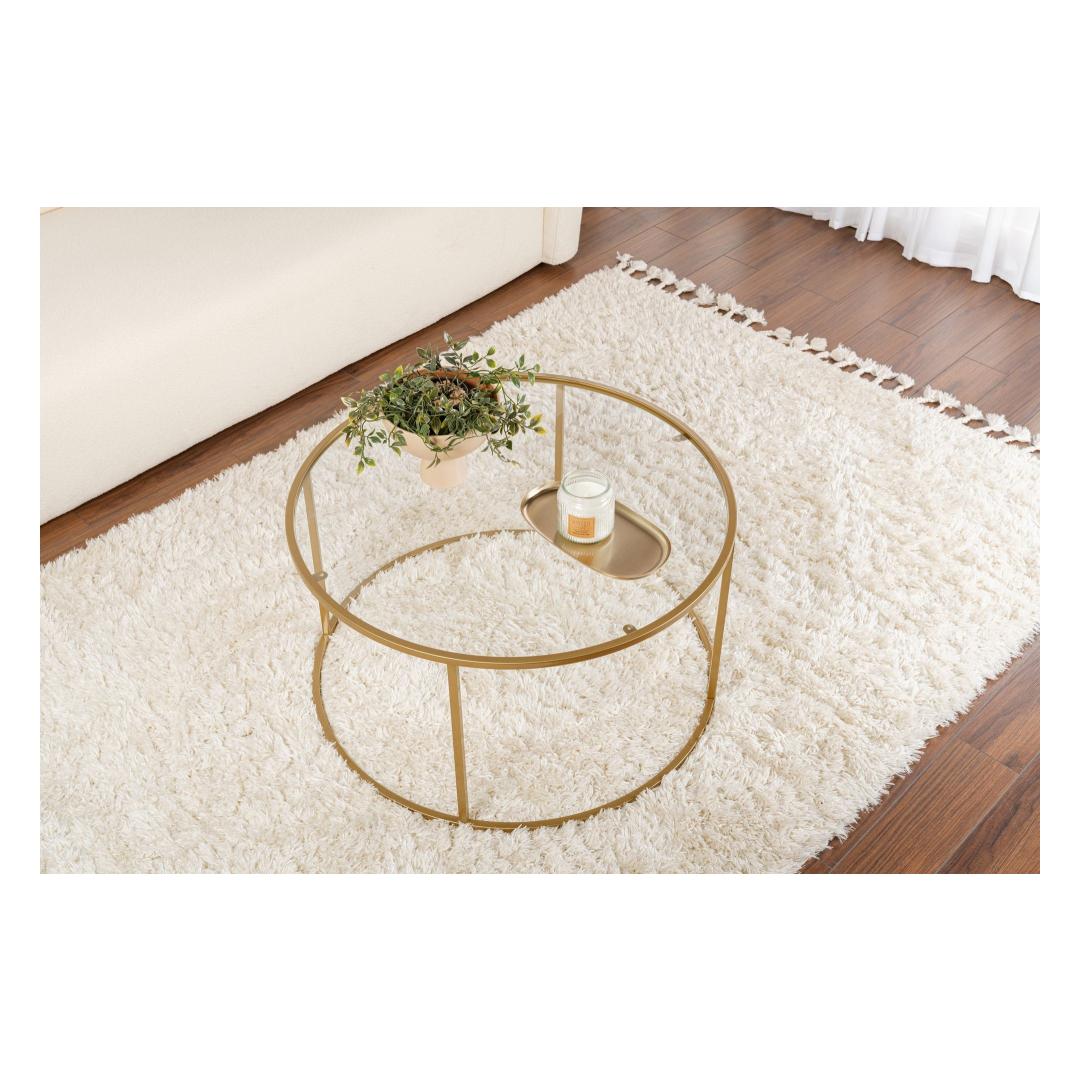 4 mm paksune karastatud klaasist pealispind ja tugev metallraam tagavad, et see kohvilaud kestab kaua. Kuldne viimistlus lisab soojust ja rafineeritust, muutes selle mitmekülgseks osaks, mis sobib igasuguse sisustuse stiiliga. Stiilne ja minimalistlik disain võimaldab sellel sujuvalt sulanduda sinu olemasoleva mööbliga, samas kui see jääb silmapaistvaks.