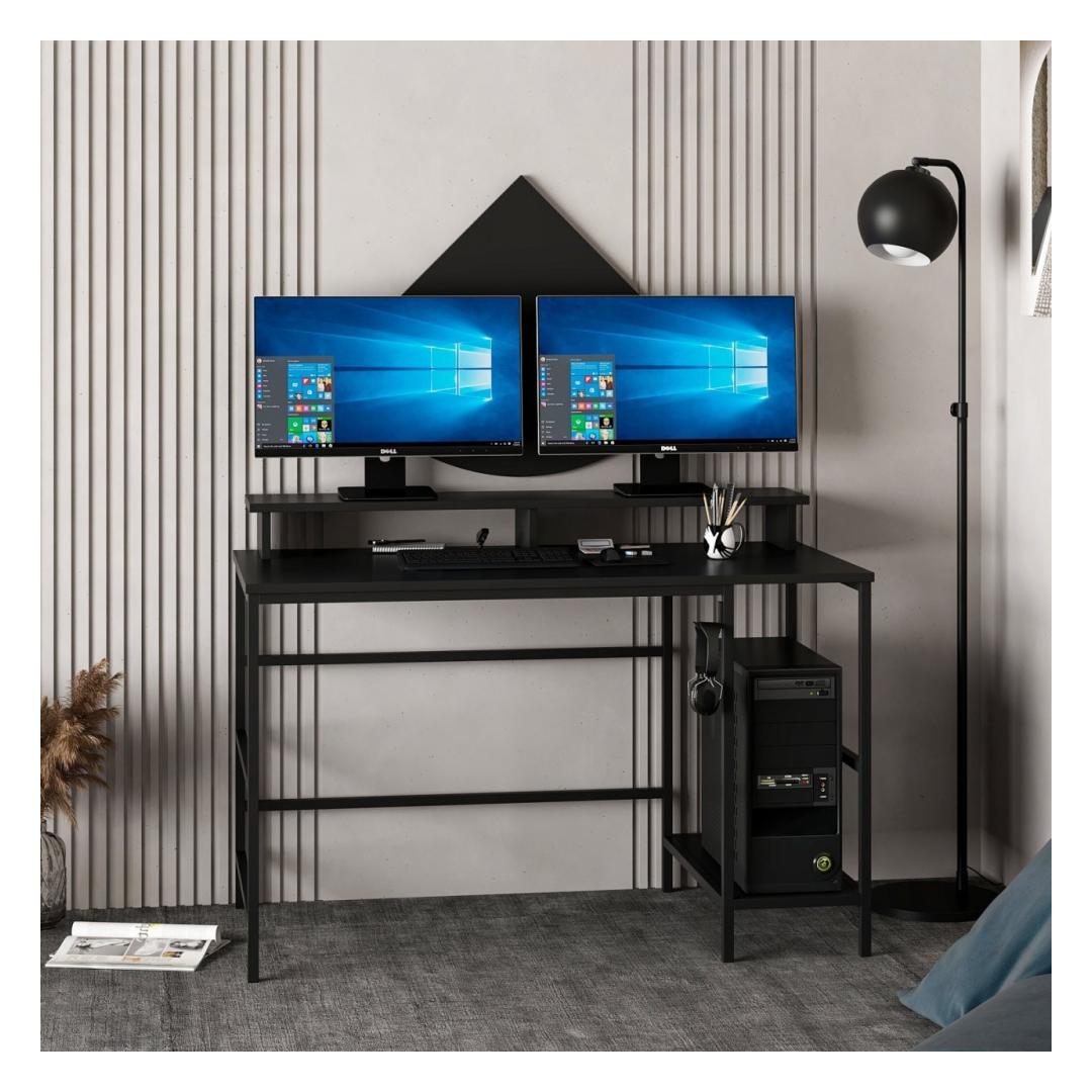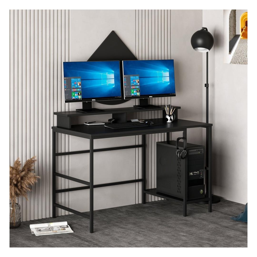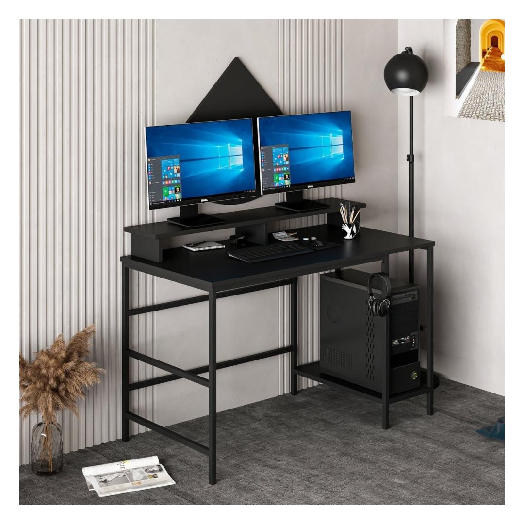 Meie töölaud on valmistatud 100% melamiiniga kaetud puitlaastplaadist, mis tagab vastupidavuse ja pikaealisuse. Korralik must värvus lisab igasse ruumi elegantsust, samas kui ruumikas kirjutuslaud pakub piisavalt ruumi kõigile vajalikele õppetarbedele. Selle 120 cm laiuse, 74 cm kõrguse ja 60 cm sügavusega kirjutuslaua puhul on funktsionaalsus ja stiil ideaalses tasakaalus.