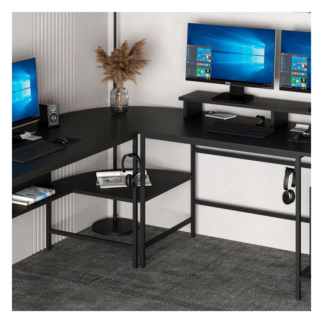 Meie töölaud, millel on avar parem ja vasakpoolne laud, pakub piisavalt ruumi kõigile teie õppematerjalidele. Enam ei pea võitlema õpikute, vihikute ja kirjatarvete koha leidmisega. Lisaks pakub laua kohal olev riiul mugavat kohta oma lemmikraamatute või kaunistuste esitlemiseks, lisades oma õpperuumi isikupärastamist.