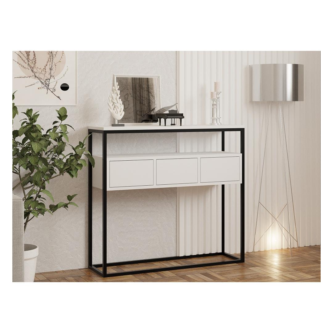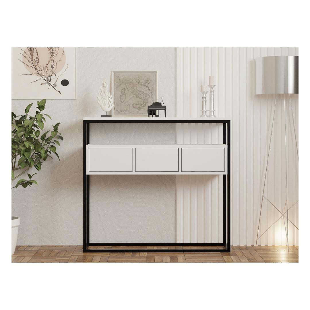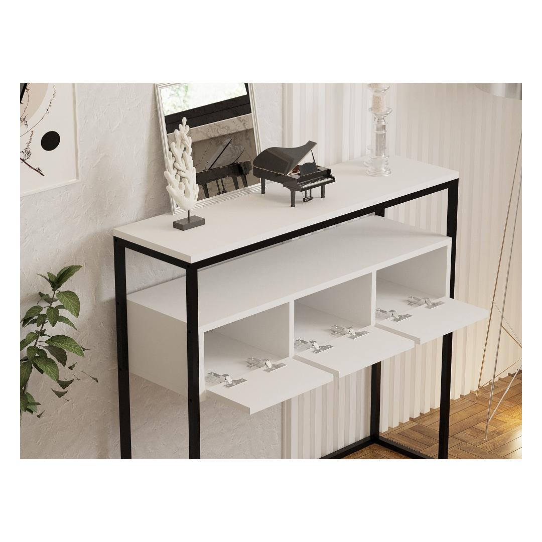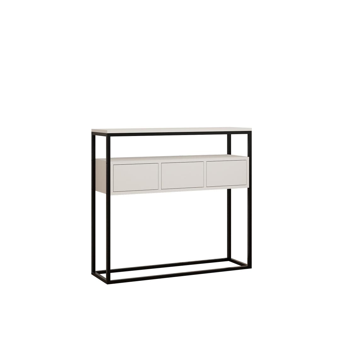 Muuda oma eluruum meie kauni konsooliga, mis on valmistatud 100% melamiiniga kaetud puitlaastplaadist. Sleek valge värv lisab igasse ruumi elegantsi ja modernsust, muutes selle ideaalseks lisandiks sinu kodu sisustusse.