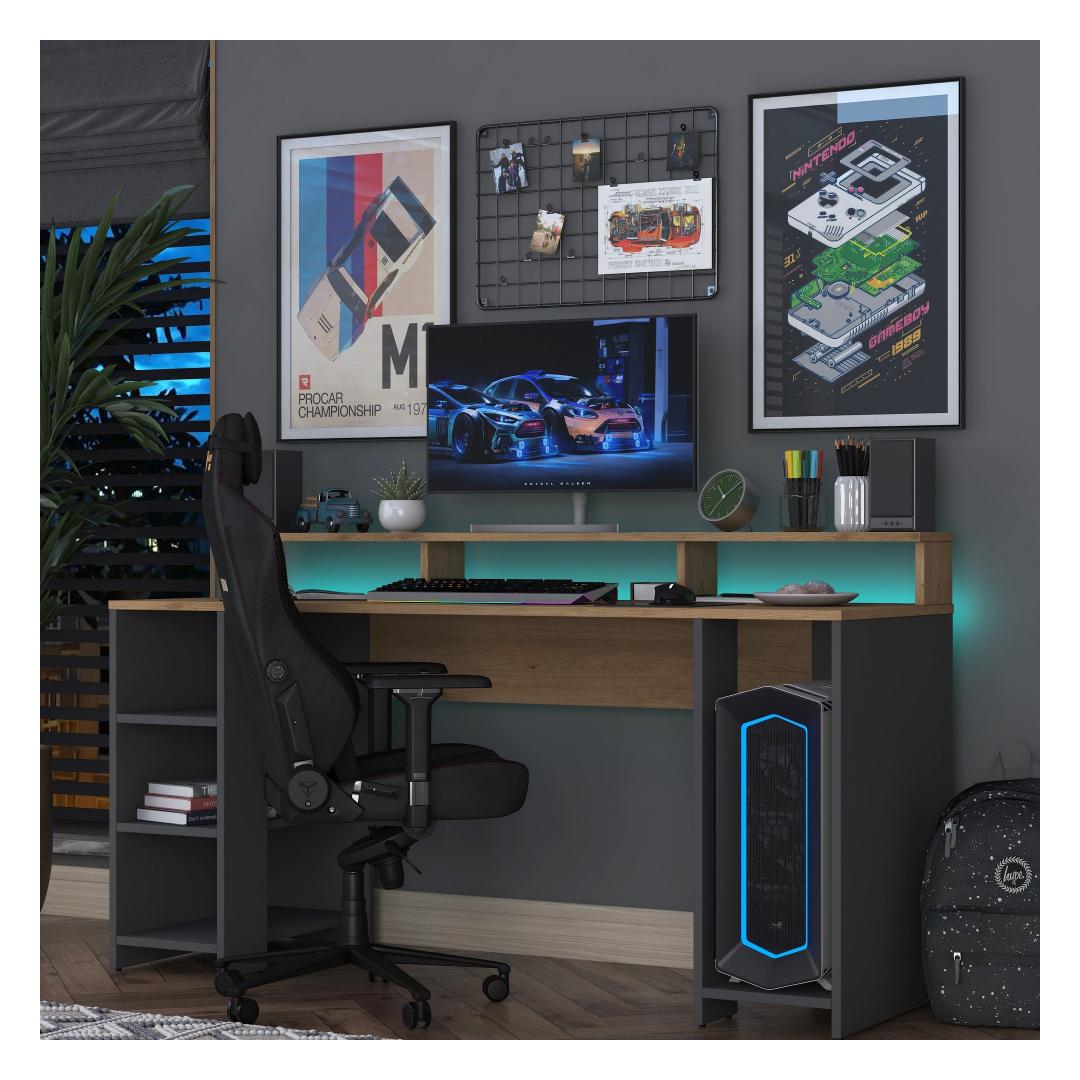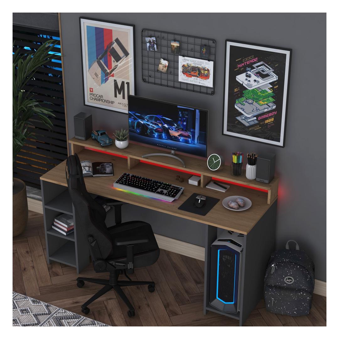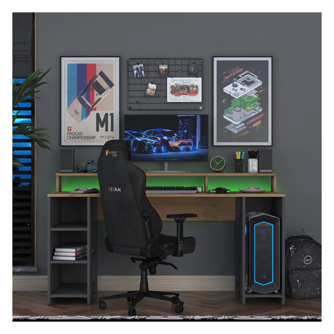 Sukelduge meie õppelaua abil teadmiste ja inspiratsiooni maailma. Selle stiilne ja moodne disain koos pähklipuu ja antratsiidi värvide täiusliku seguga tõstab koheselt teie õpperuumi esteetikat. Kogege õppimisrõõmu keskkonnas, mis on nii stiilne kui ka funktsionaalne.