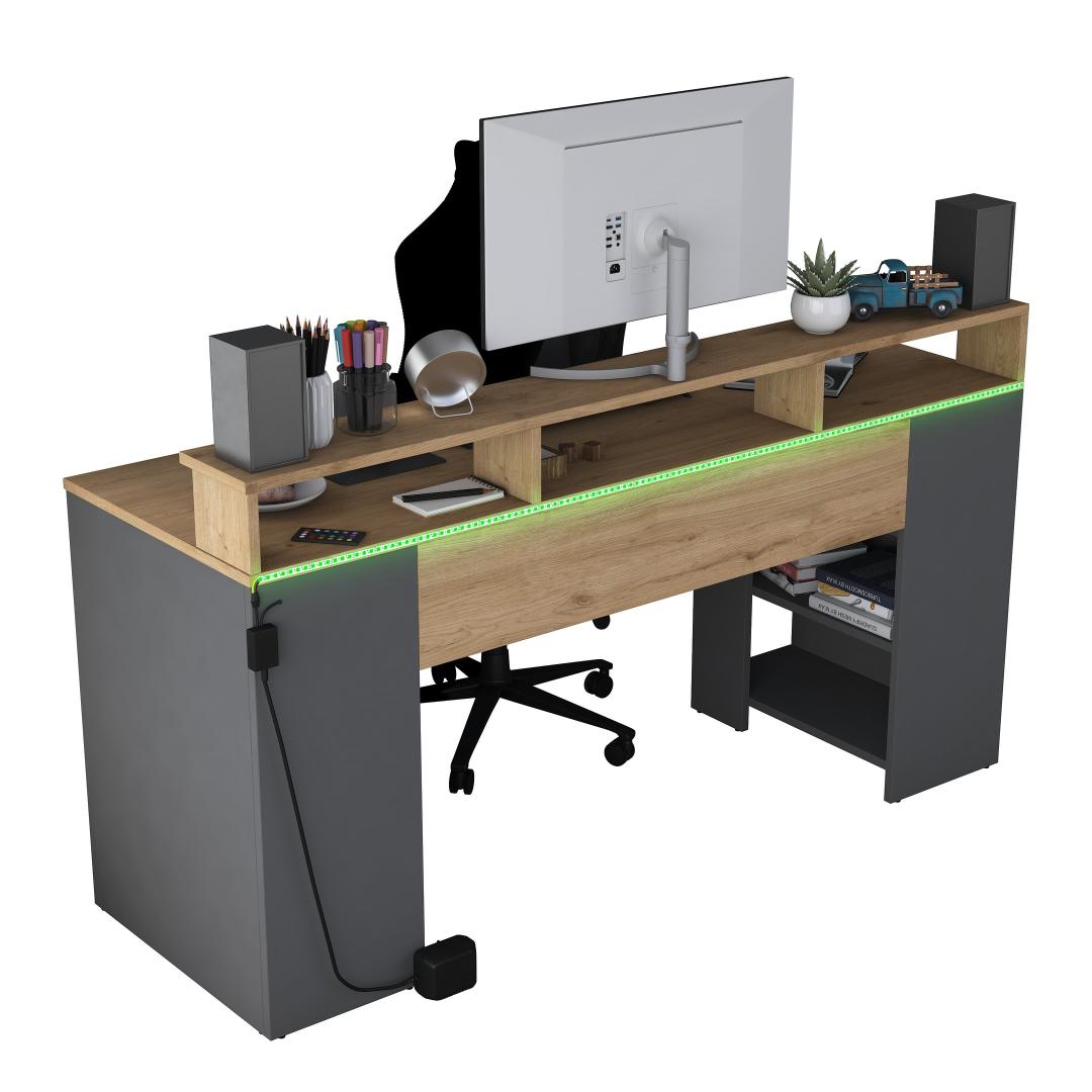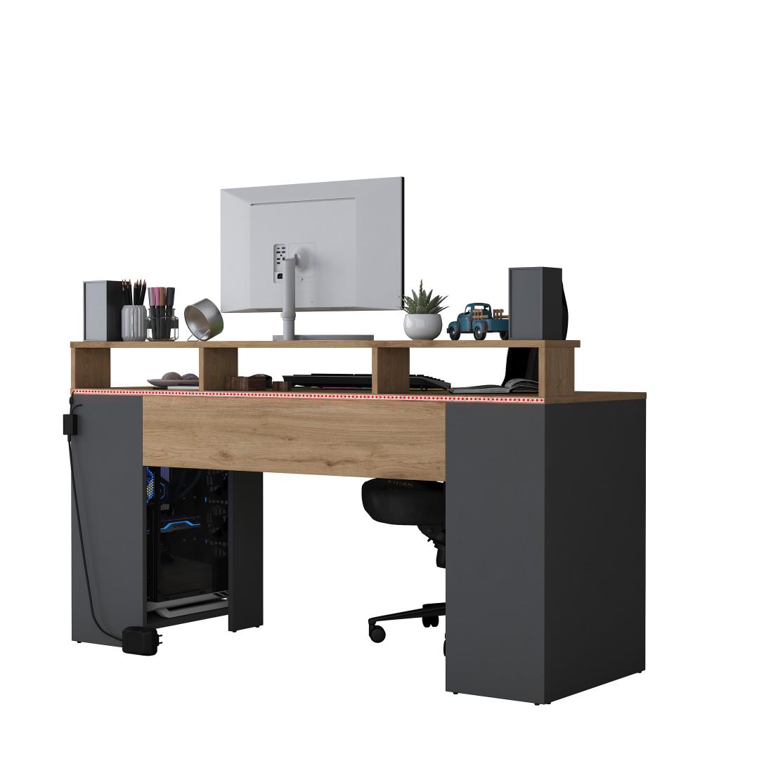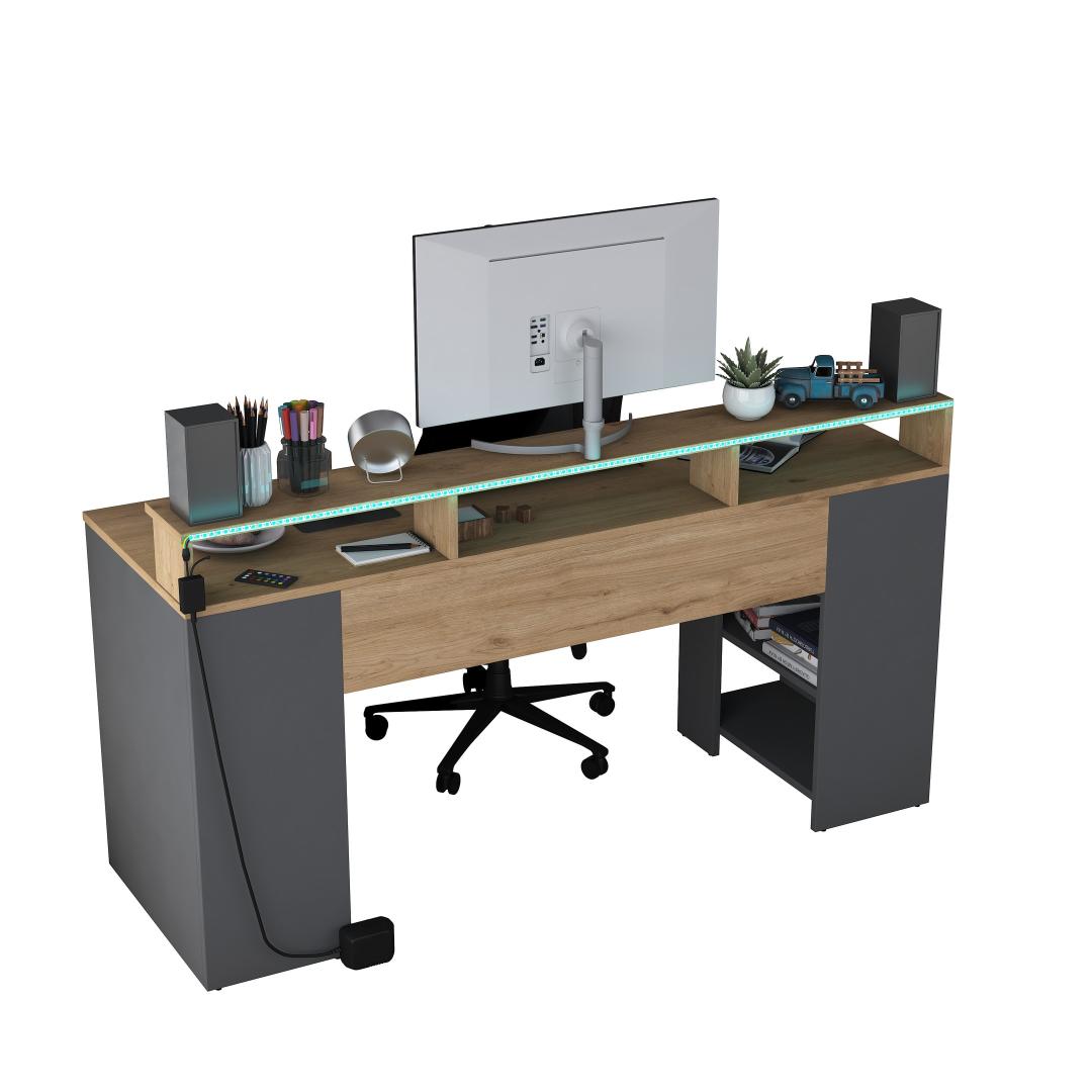 Sukelduge meie õppelaua abil teadmiste ja inspiratsiooni maailma. Selle stiilne ja moodne disain koos pähklipuu ja antratsiidi värvide täiusliku seguga tõstab koheselt teie õpperuumi esteetikat. Kogege õppimisrõõmu keskkonnas, mis on nii stiilne kui ka funktsionaalne.