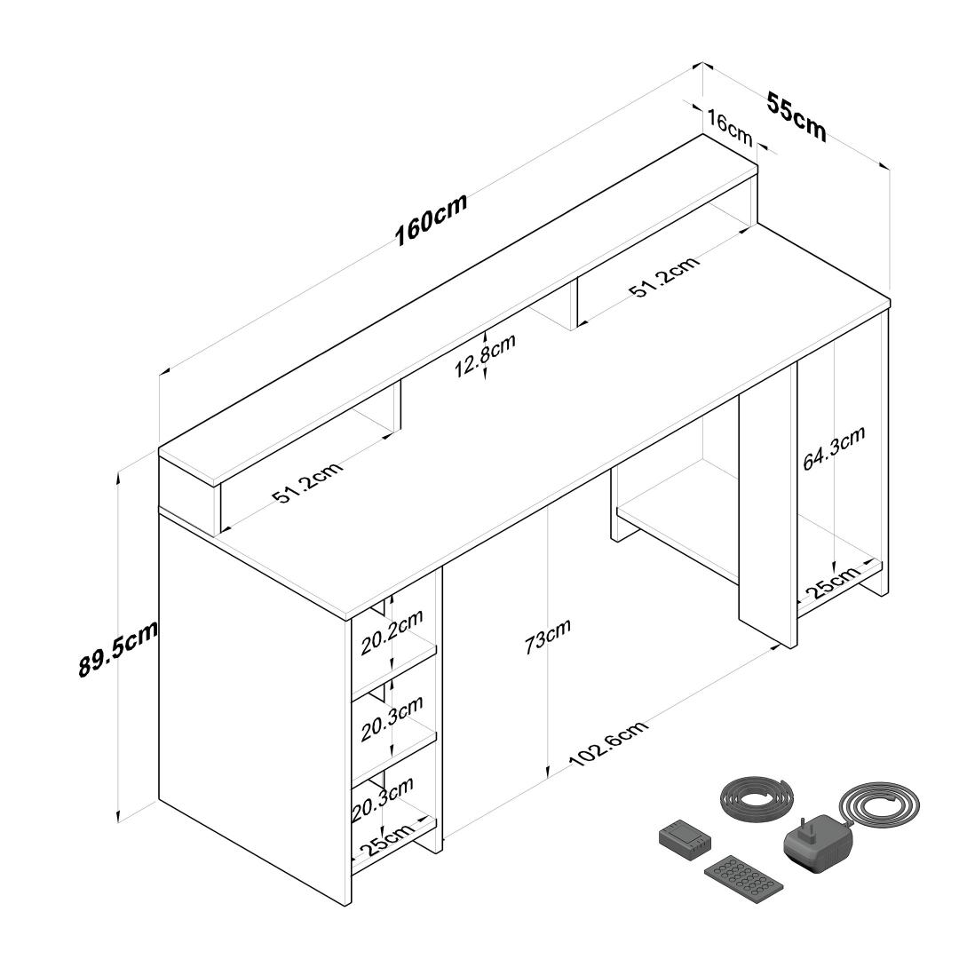 Meie õppelaud on läbimõeldult kujundatud ideaalsete mõõtmetega, et pakkuda teile õppimise ajal maksimaalset mugavust. Laius 160 cm, kõrgus 89. 5 cm ja sügavus 55 cm, pakub see töölaud piisavalt ruumi kõigile teie õppetööks vajalikele asjadele. Ütle hüvasti kitsastele ruumidele ja tere avarale ja korrastatud õpperuumile.
