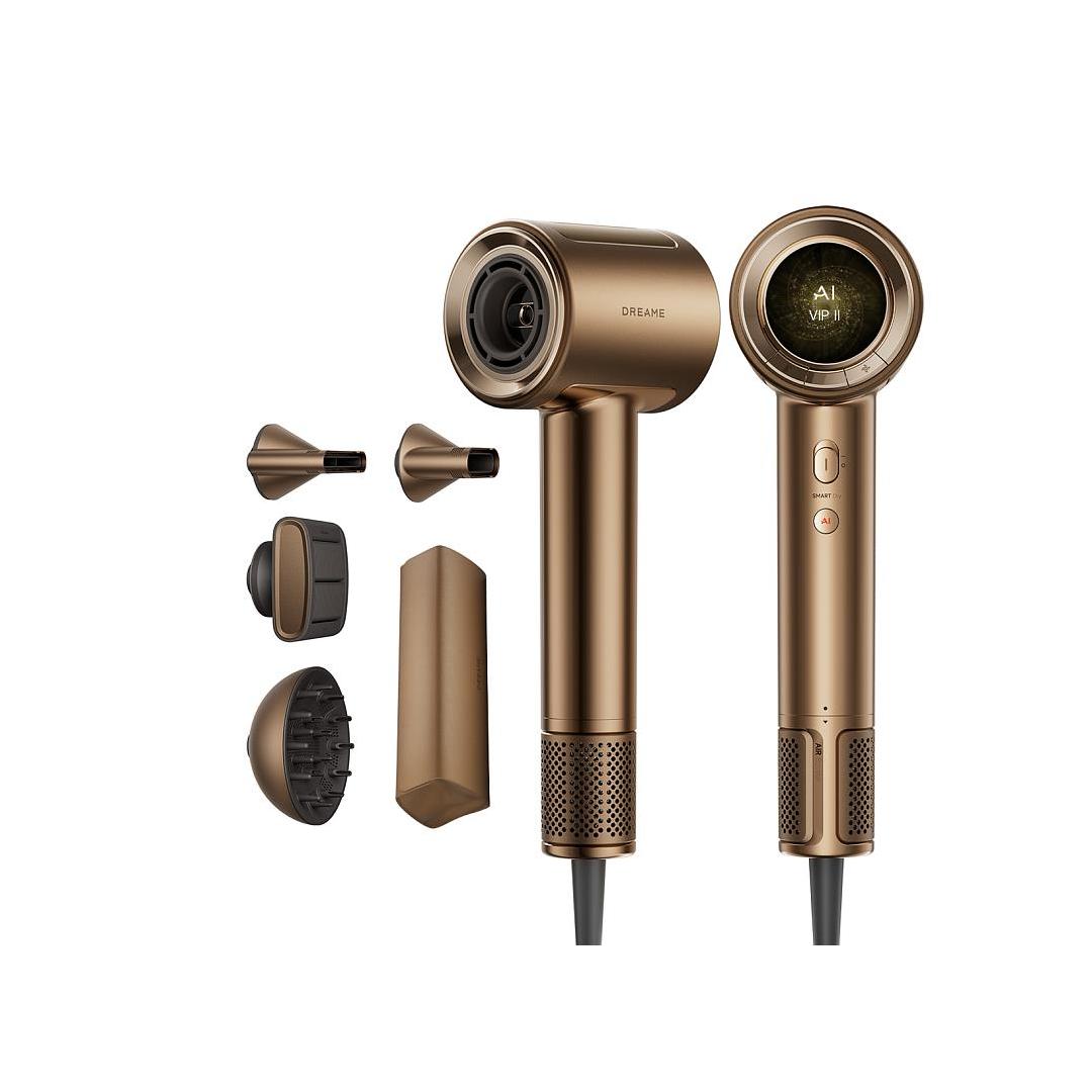 Dreame AHX01A. Motor speed: 150000 RPM, Temperature: 40 °C, Temperature (max): 70 °C. Product colour: Bronze, Cord length: 2.8 m, Country of origin: China. Power: 1600 W. Warranty period: 2 year(s). Width: 78 mm, Depth: 93 mm, Height: 263 mm