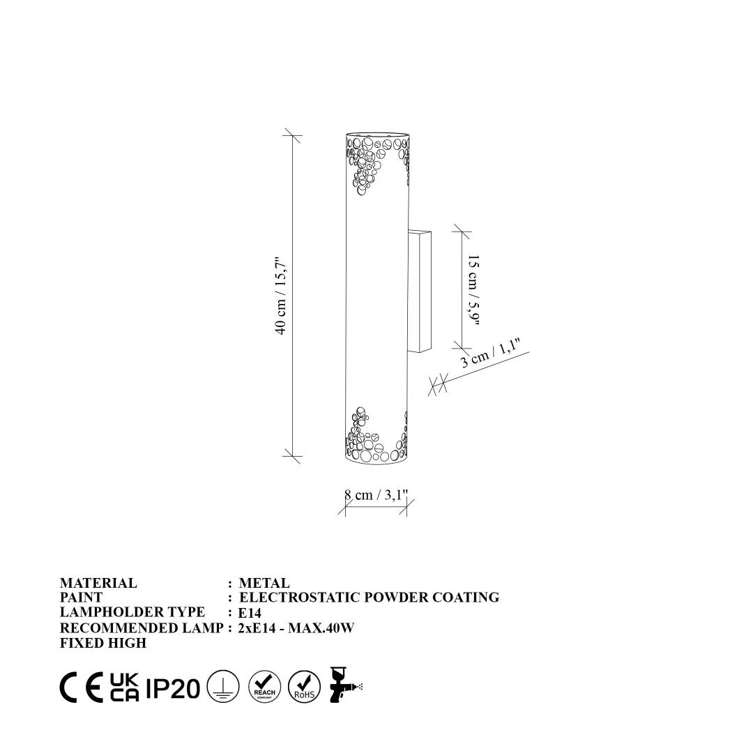 Socket Type: 2 x E 14 Max 40 W