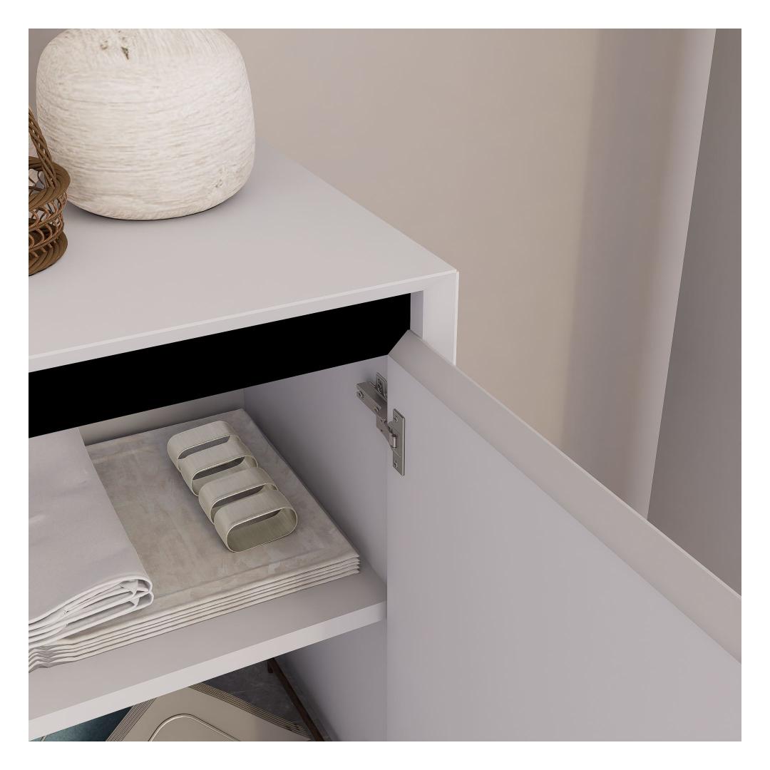 Muuda oma eluruum selle hämmastava valge konsooliga, mis kiirgab elegantsi ja rafineeritust. Valmistatud 100% melamiinkattega puitlaastplaadist, on see konsool mitte ainult vastupidav, vaid ka uskumatult stiilne.Tõsta oma kodu sisustusLisa oma koju modernsuse puudutus selle stiilse ja minimalistliku konsooliga. Selle puhtad jooned ja valge viimistlus teevad sellest ideaalse lisandi igasse kaasaegsesse elutuppa või koridori.Rohke hoiuruumPaljude riiulitega pakub see konsool piisavalt hoiuruumi kõigi sinu oluliste asjade jaoks. Alates raamatutest ja dekoratiivesemetest kuni elektrooniliste seadmeteni, saad oma asjad hõlpsasti stiilselt organiseerida ja eksponeerida.Mitmekesine disainOlgu see seinaga külg külje kõrval või ruumijagajana, see konsool pakub disainis mitmekesisust. Selle kompaktne suurus teeb sellest ideaalse lahenduse väikestesse ruumidesse, pakkudes samas funktsionaalsust ja stiili.Tehnilised andmed:Materjal: 100% melamiinkattega puitlaastplaatPaksus: 18 mmLaius: 180 cmKõrgus: 80 cmSügavus: 37,3 cmVärv: Valge Värv: White