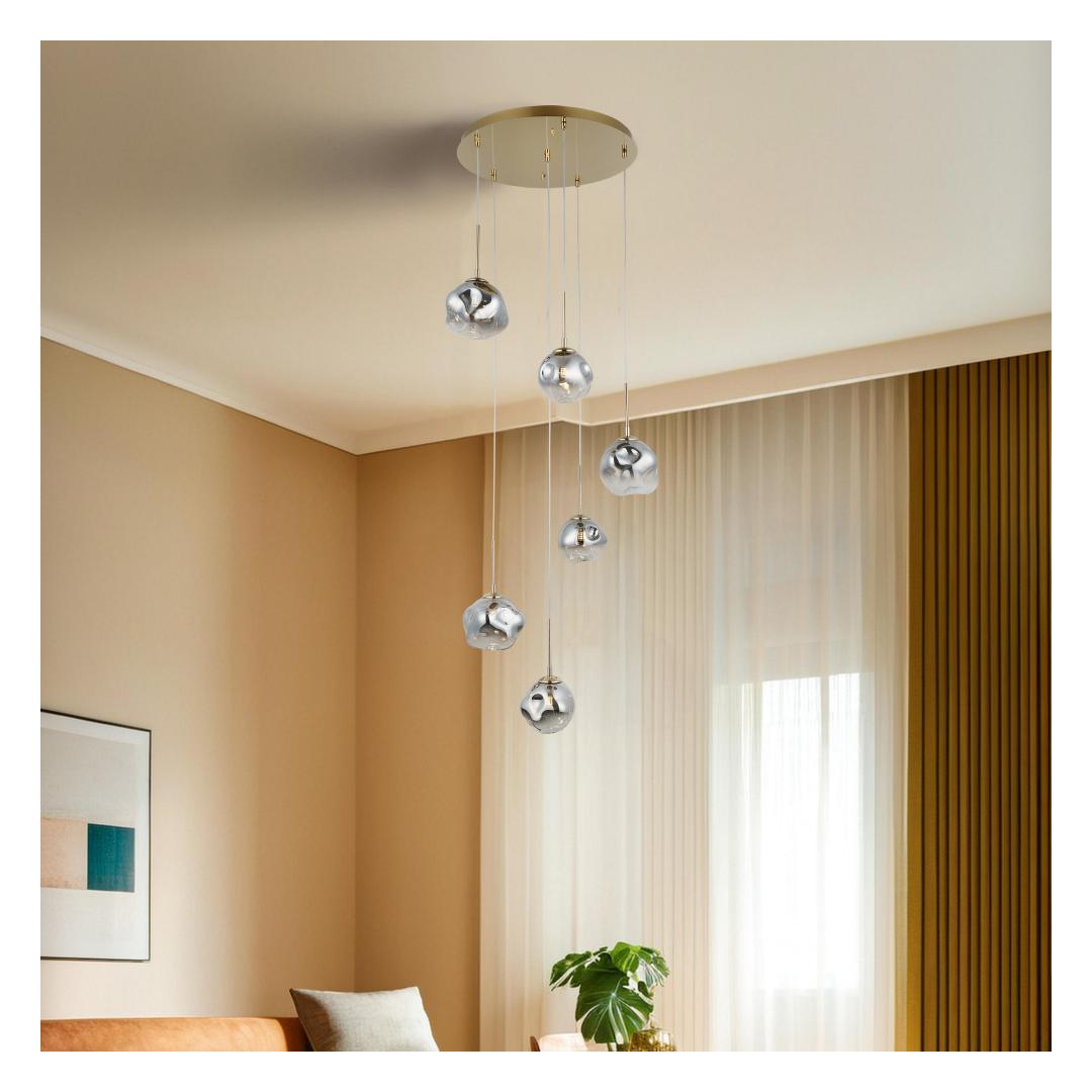 Muuda oma eluruum luksuslikuks ja elegantseks oaasiks meie hämmastava lühtri abil. Sujuv metallkorpus koos delikaatse klaaskattega kiirgab rafineeritust ja stiili, muutes selle igas toas ideaalseks silmapaistvaks elemendiks.Valgusta oma kodu stiilseltLisa oma koju veidi glamuurset hõngu meie lühtriga, millel on kaasaegne disain, mis tõstab koheselt sinu sisustust. Musta ja valge värvikombinatsioon lisab kaasaegset hõngu, samas kui reguleeritav kõrgus võimaldab sul valgustust kohandada vastavalt oma ruumile.Loo soe ja kutsuv atmosfäärOlgu sul õhtusöök või lihtsalt kodus lõõgastumine, meie lühter loob sooja ja kutsuva atmosfääri, mis jätab mulje sinu külalistele. Kuus G9 pirni pakuvad piisavalt valgust, samas kui kaasasolev pirn tagab lihtsa paigaldamise ja mugavuse.Tehnilised andmed:Metallkorpus klaaskattegaKatte suurus: Ø18 h: 15 cmPõhja plaat: 48 x 48 x 2,5 cmKogukõrgus: 50 - 228 cmPesatüüp: 6 x G 9 Max 20 WPirn kaasas220-240 VIP kood: IP20Värv: Must ja Valge Värv: Black White