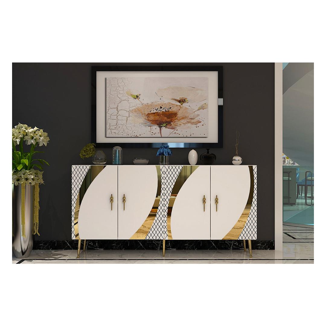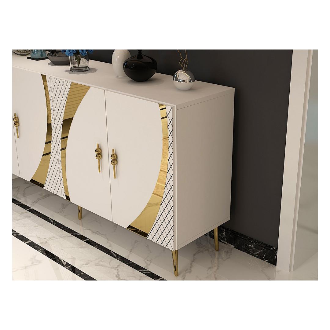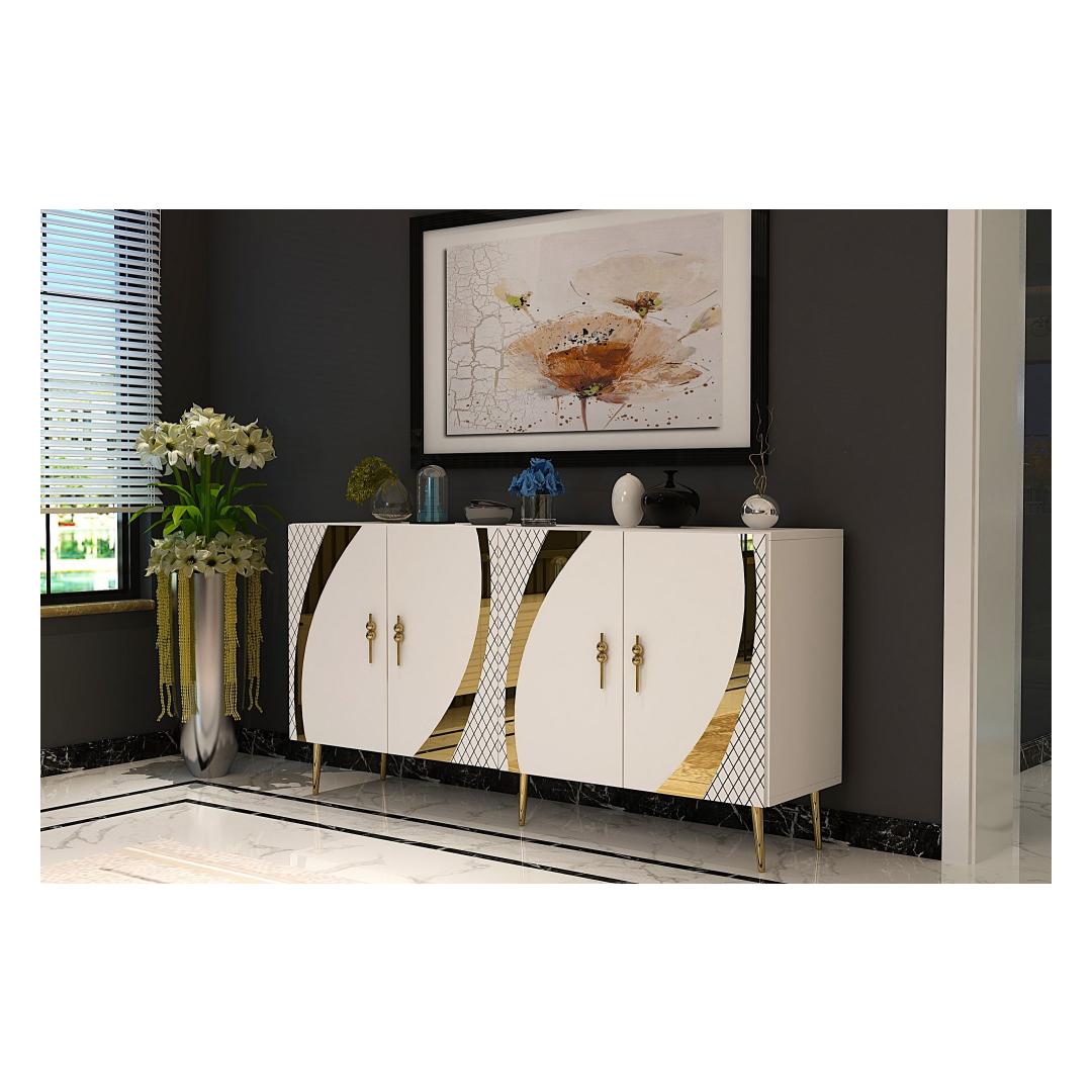 Tutvustame meie uimastavat ja mitmekülgset konsooli, mis on kohustuslik ese igasse moodsasse koju. See konsool ei ole lihtsalt mööblitükk, see on stiili ja elegantsi avaldus. Elegantne disain ja elegantne valge ja kuldne värvikombinatsioon tõstavad koheselt teie kodu mis tahes ruumi, lisades särtsu luksust ja glamuuri. Tõstke oma ruumi ülesMuutke oma elutuba, koridor või esikussepääs selle kauni konsooliga. Selle puhtad jooned ja kaasaegne disain muudavad selle ideaalseks täienduseks igale ruumile, olgu see siis minimalistliku või glamuursema esteetika poole püüdlev. Funktsionaalne ja stiilneTänu arvukatele riiulitele hoiustamiseks ja väljapanekuks on see konsool nii praktiline kui ka stiilne. Hoidke oma raamatuid, dekoratiivseid esemeid või perefotosid korralikult organiseeritult ja kaunilt esitletud. 100% melamiiniga kaetud puitlaastplaat tagab vastupidavuse ja pikaealisuse, nii et saate sellest esemest rõõmu tunda aastaid. Lihtsalt paigaldatavSeda konsooli saab hõlpsasti seinale kinnitada, et suurendada stabiilsust ja turvalisust. Kaasasolevad juhised muudavad kokkupaneku imelihtne, nii et saate oma uut konsooli kohe nautima hakata. Tehnilised üksikasjad:Materjal: 100% melamiiniga kaetud puitlaastplaatLaius: 150 cmKõrgus: 75 cmSügavus: 35 cmRiiuli laius: 72 cmRiiuli kõrgus: 27 cmJala kõrgus: 15 cmVärv: valge ja kuldne Värv: White Gold