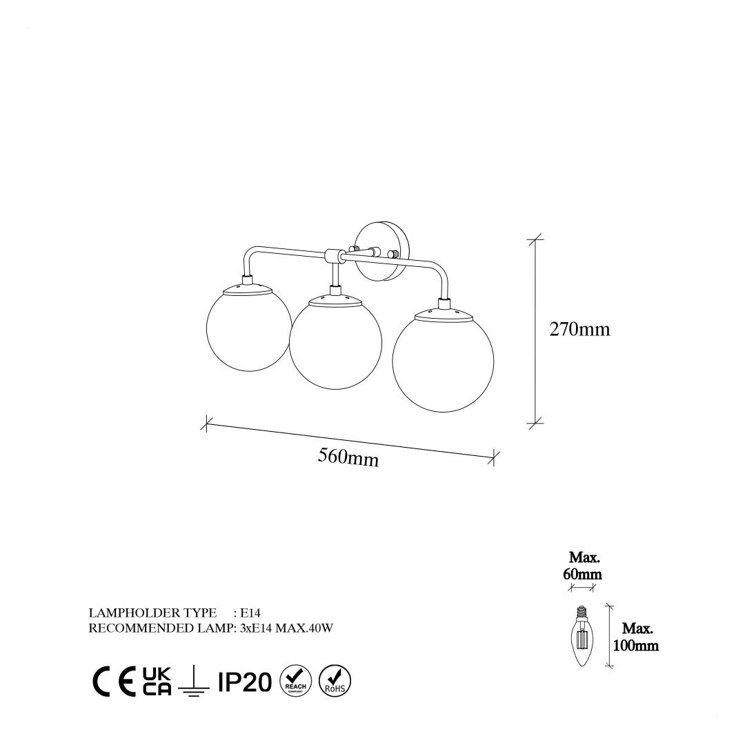 Socket Type: 3 x E 14 Max 40 W