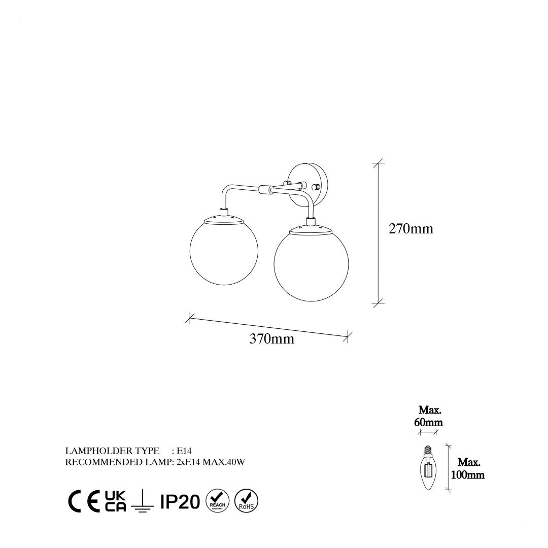 Socket Type: 2 x E 14 Max 40 W
