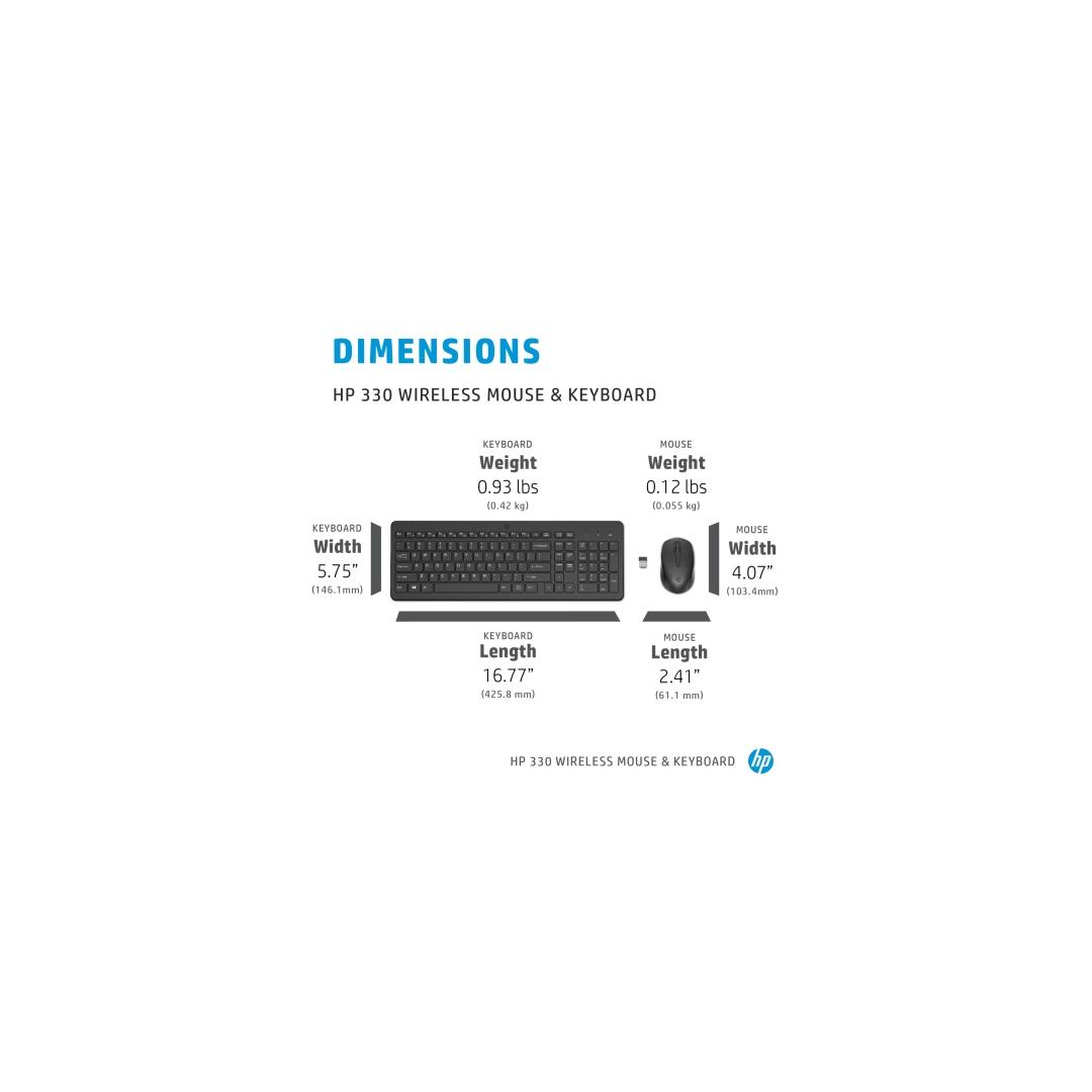 HP 330 Combo Wireless Keyboard + Mouse RF Wireless, US Int, Black