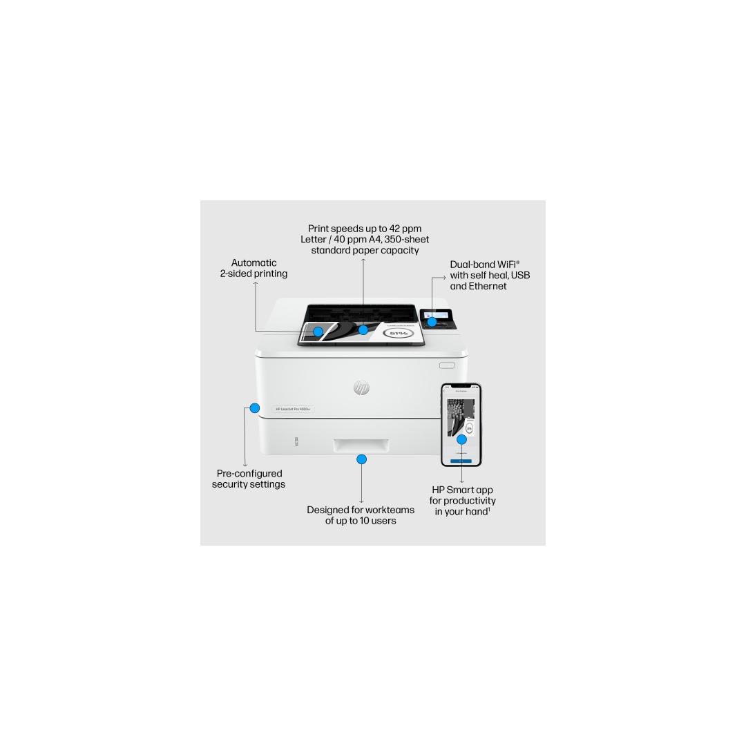 HP LaserJet Pro 4002dw Printer Laser B/W A4 40ppm USB Wi-Fi Ethernet LAN Bluetooth