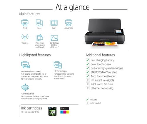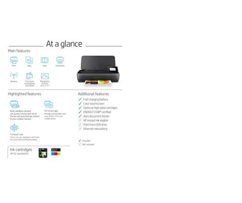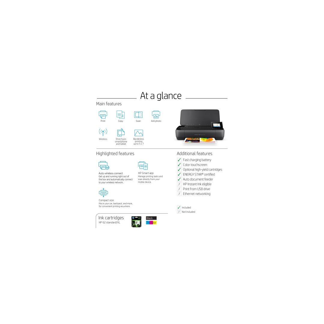 HP OfficeJet 250 Mobile All-in-One Printer Inkjet Colour MFP A4 20 ppm USB Wi-Fi Bluetooth