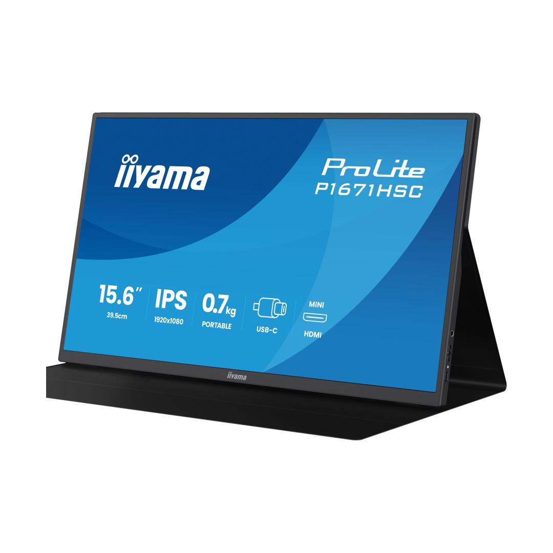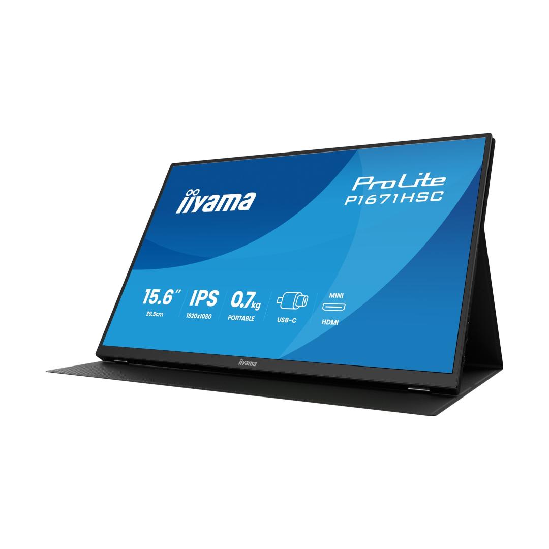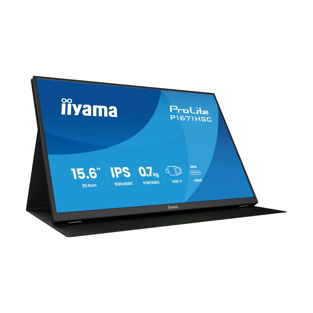 IIYAMA P1671HSC-B1 Portable 15.6inch IPS FHD 250cd/m2 2xUSB-C mHDMI Speakers leather cover/stand