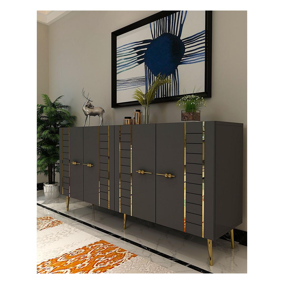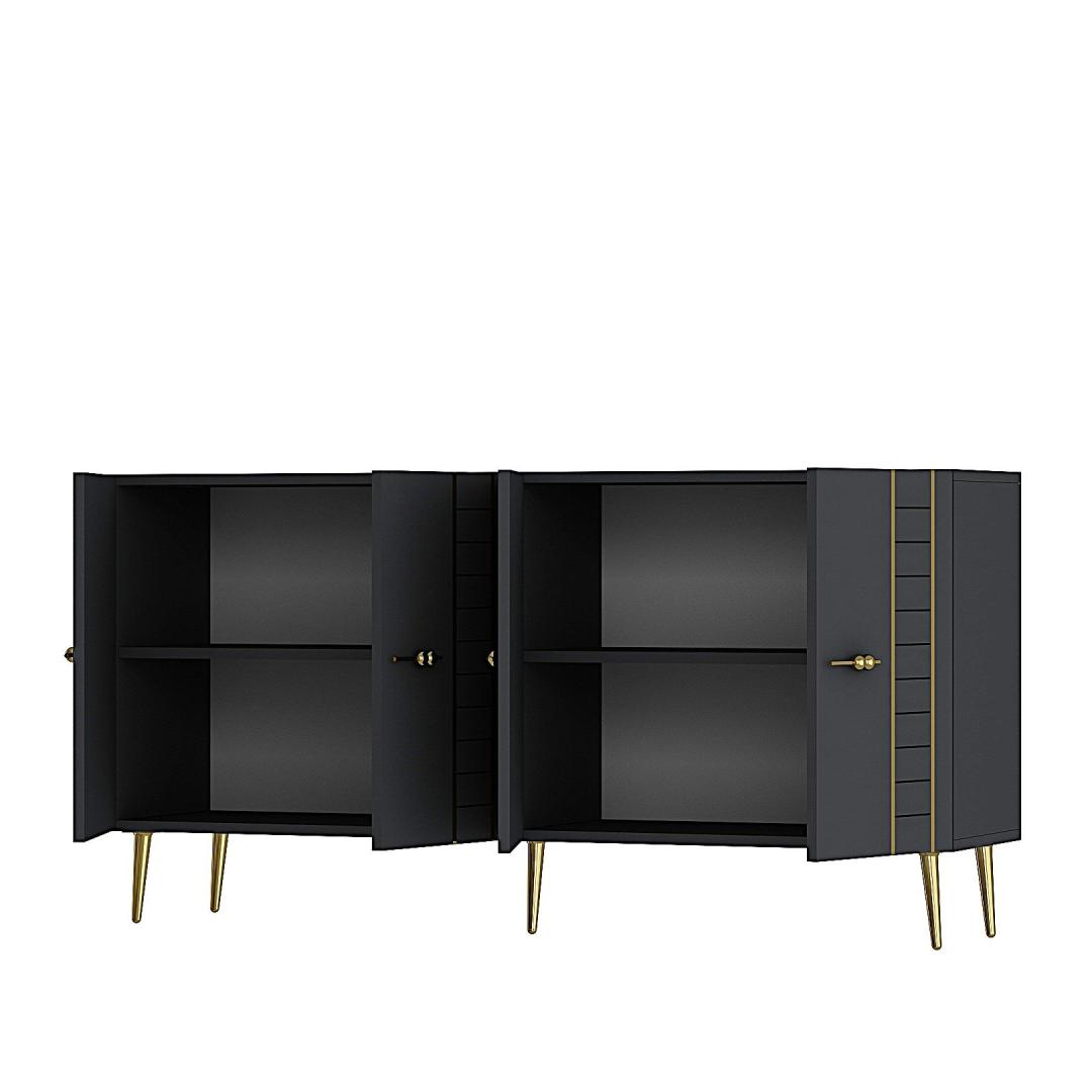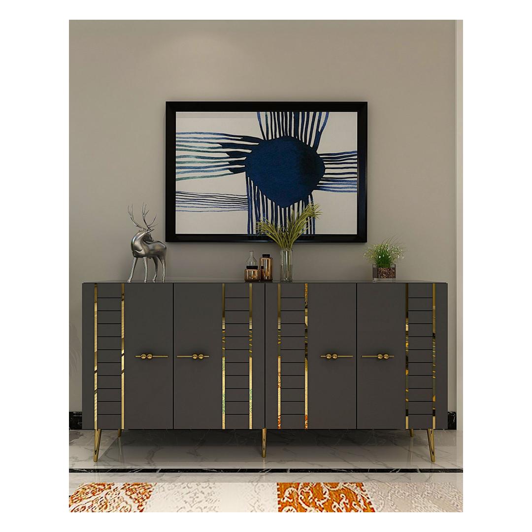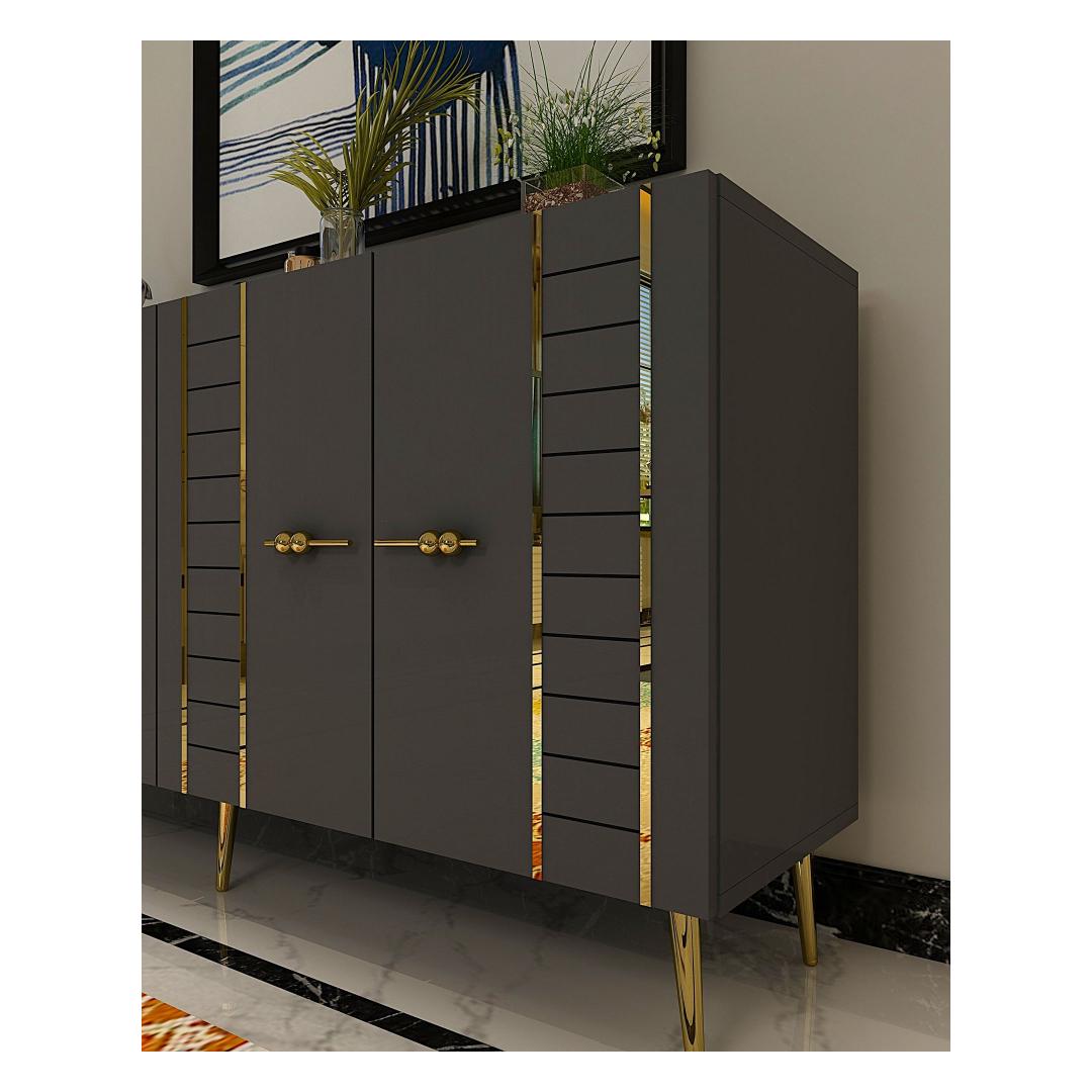 Muuda oma eluruumi meie kauni antratsiidi ja kuldse konsooliga. See ese ei ole lihtsalt mööbel, vaid elegantsi ja rafineerituse väljendus. Sujuv disain ja kaasaegne värvikombinatsioon tõstavad koheselt iga ruumi atmosfääri, muutes selle sinu kodu keskpunktiks.Elegants ja Funktsionaalsus KoosKonsool on valmistatud 100% melamiinkattega puitlaastplaadist, tagades vastupidavuse ja pikaealisuse. 18 mm paksune konsool on ehitatud kestma aastaid. Ruumikad mõõtmed 150 cm laiuses, 75 cm kõrguses ja 35 cm sügavuses pakuvad piisavalt hoiuruumi kõigi sinu oluliste asjade jaoks. Arvukad riiulid, mille laius on 72 cm ja kõrgus 27 cm, võimaldavad sul oma asju mugavalt organiseerida ja eksponeerida.Mitmekesine ja Stiilne DisainKonsooli saab kinnitada seina külge, andes sulle võimaluse kohandada oma ruumi vastavalt oma eelistustele. Jala kõrgus 15 cm lisab elegantsi, pakkudes samas stabiilsust ja tuge. Antratsiidi ja kuldse värvikombinatsioon toob sinu dekoreerimisse luksuse ja rafineerituse, muutes selle mitmekesiseks tükiks, mis sobib igasse stiili.Tehnilised Üksikasjad:Materjal: 100% melamiinkattega puitlaastplaatPaksus: 18 mmLaius: 150 cmKõrgus: 75 cmSügavus: 35 cmRiiuli laius: 72 cmRiiuli kõrgus: 27 cmJala kõrgus: 15 cmVärv: Antratsiit ja Kuld Värv: Anthracite Gold