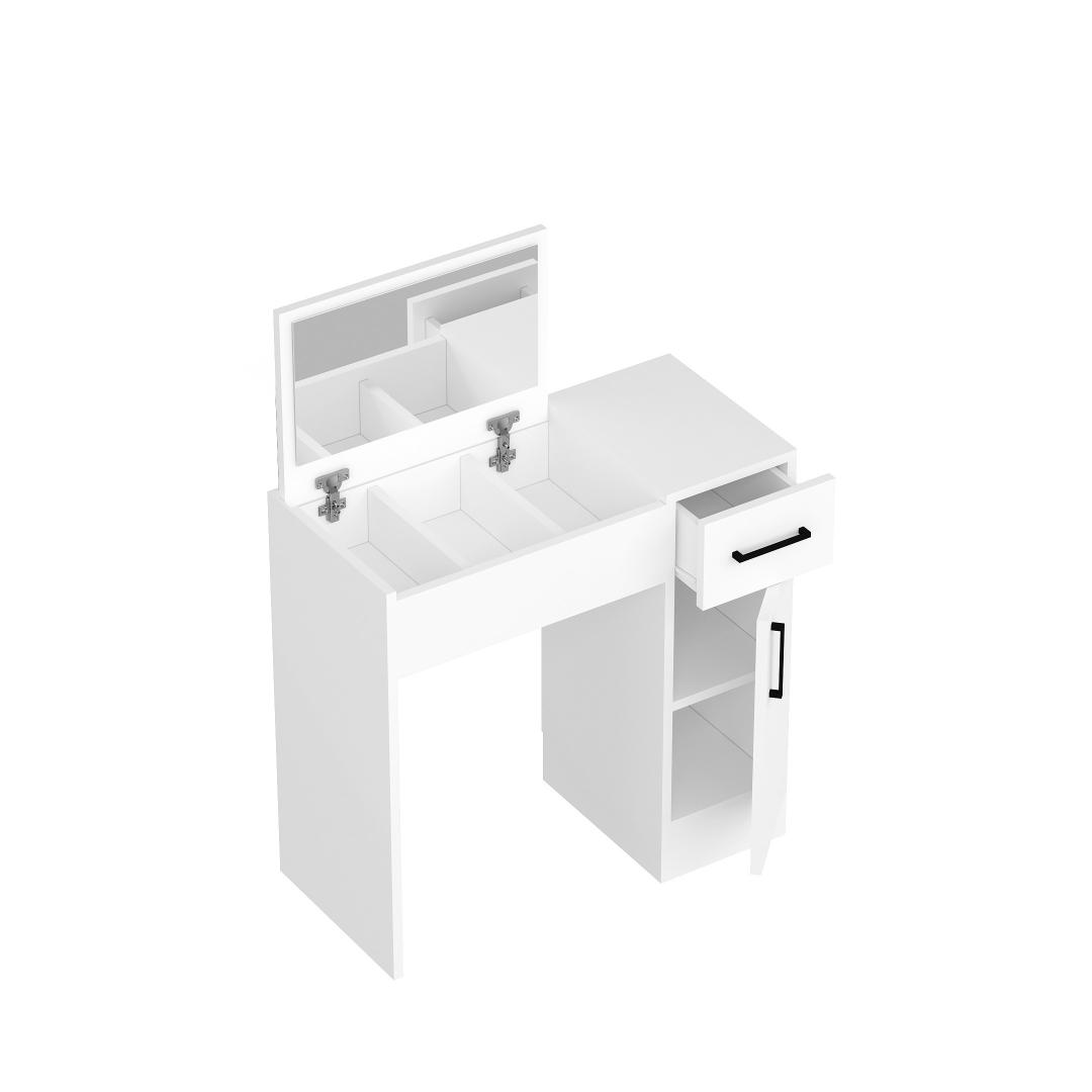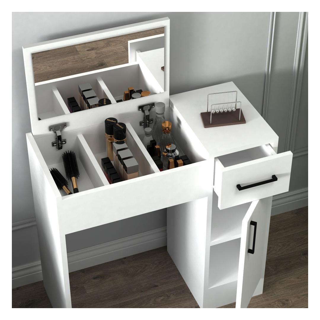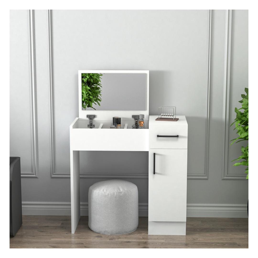 Tänu oma elegantsele ja minimalistlikule disainile sobib see meigilaud hõlpsasti mis tahes sisekujundusega. Valge värvus lisab teie ruumile elegantsi ja rafineeritust, luues rahulikku ja rahustavat atmosfääri.