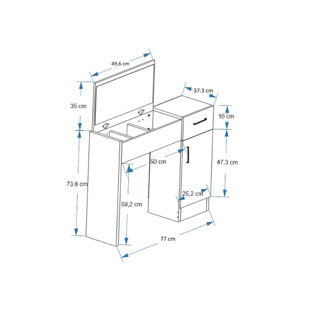 100% melamiiniga kaetud puitlaastplaadist valmistatud meigilaud on vastupidav ja tugev. Selle kindel konstruktsioon tagab, et see peab vastu, pakkudes teile usaldusväärset ja kauakestvat ilu kaaslast.