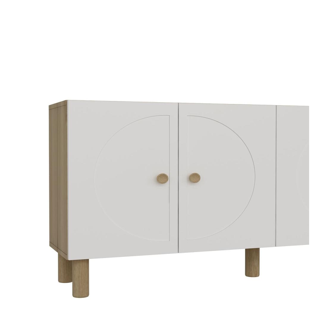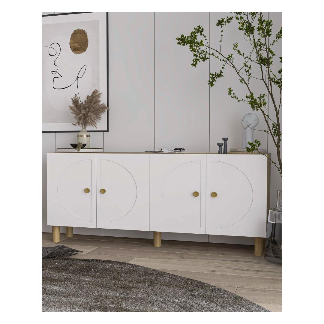 Muuda oma eluruum meie kauni konsooliga, mis on valmistatud 100% melamiiniga kaetud puitlaastplaadist. See ese ei ole lihtsalt mööbel, vaid stiili ja rafineerituse väljendus. Sujuv disain ja elegantne Sapphire Oak ja Valge värv tõstavad koheselt iga ruumi ilmet.Tõsta oma ruumiLisa oma koju modernne elegants selle konsooliga. Selle puhtad jooned ja minimalistlik disain teevad sellest ideaalse lisandi igasse kaasaegsesse sisustusse. Avarad riiulid pakuvad piisavalt hoiuruumi kõigi sinu oluliste asjade jaoks, samas kui sujuv viimistlus lisab sinu ruumile luksuse puudutuse.Mitmekülgne ja funktsionaalneSee konsool ei ole mitte ainult stiilne mööbliese, vaid ka äärmiselt praktiline. Paljude riiulitega saad hõlpsasti korraldada ja eksponeerida oma lemmikuid esemeid. Võimalus kinnitada see seina külge lisab stabiilsust ja turvalisust, muutes selle ideaalseks kodudesse, kus on lapsed või lemmikloomad.Kvaliteetne käsitööValmistatud 100% melamiiniga kaetud puitlaastplaadist, on see konsool loodud kestma. 18mm paksus tagab vastupidavuse ja tugevuse, samas kui täpsed mõõtmed 150cm laius, 75cm kõrgus ja 35cm sügavus teevad sellest igasse ruumi ideaalse suuruse.Tehnilised andmed:Materjal: 100% melamiiniga kaetud puitlaastplaatPaksus: 18mmLaius: 150cmKõrgus: 75cmSügavus: 35cmRiiuli laius: 72.2cmRiiuli kõrgus: 27.3cmJala kõrgus: 15cmVärv: Sapphire Oak ja Valge Värv: Sapphire Oak White