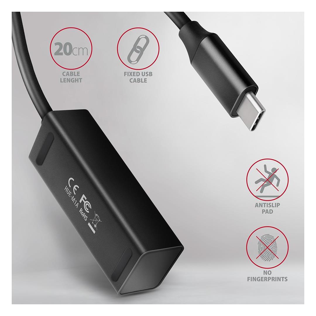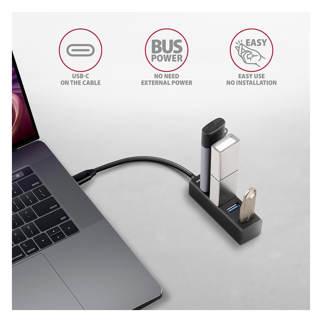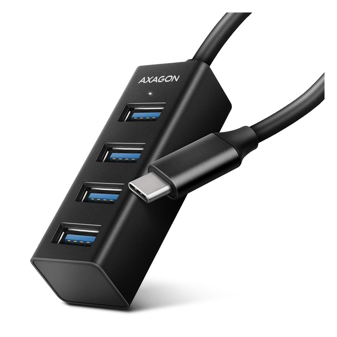 Miniature metal USB-C 3.2 Gen 1 hub AXAGON HUE-M1C fast and easy connects up to four USB devices to laptop or computer.
