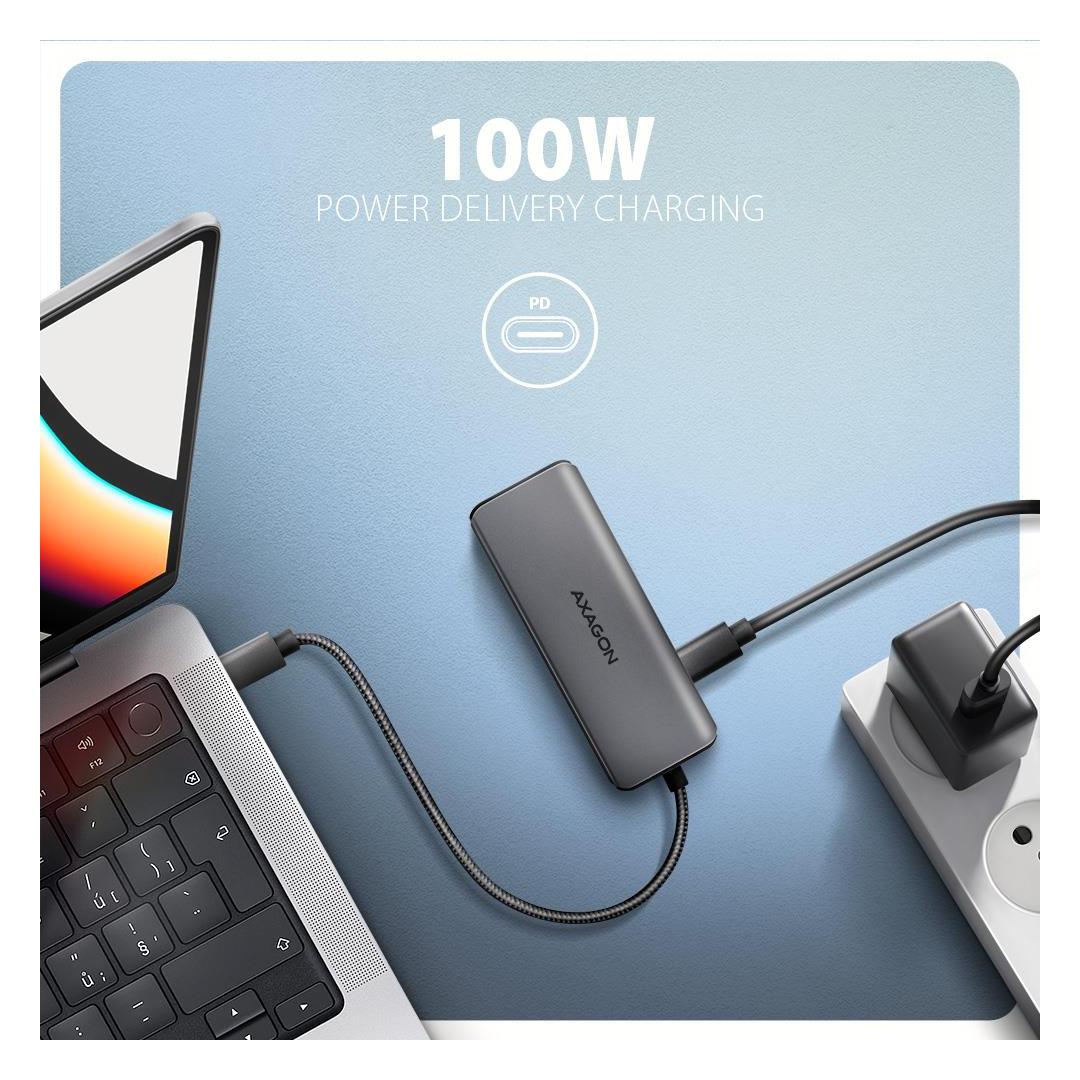 The multi-port USB-C 5Gbps hub AXAGON HMC-5H8K expands your laptop, computer or phone with five ports. Via the double-sided USB-C connector, you can quickly and easily connect a monitor and three USB devices to the computer at the same time. You also get the possibility to supply laptop using Power Delivery technology at the same time. The USB-C hub will provide you with a simple and compact 5in1 docking station for modern notebooks.