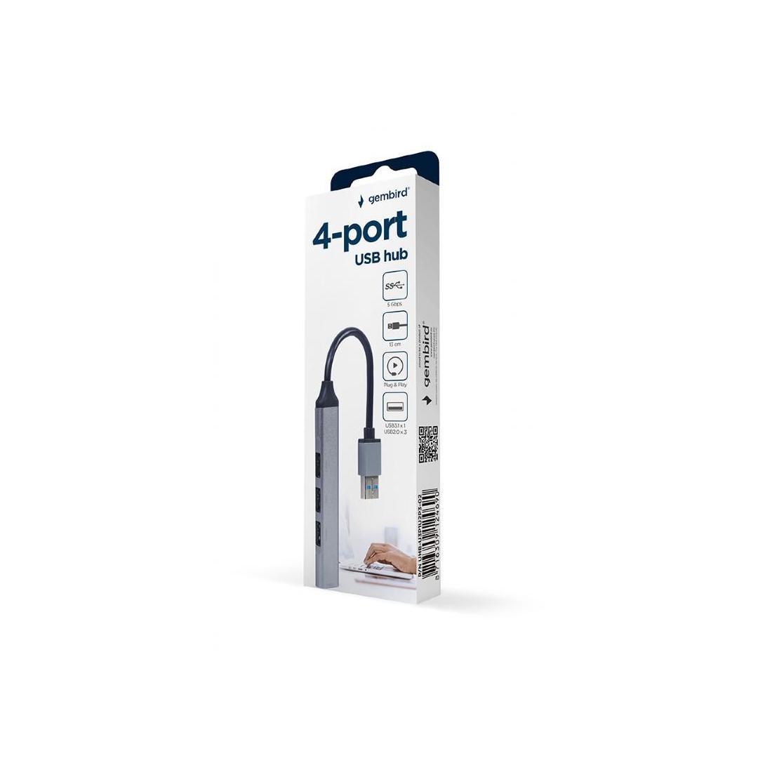4-port USB hub (USB3 x 1 port, USB2 x 3 ports), silver YOUR GATEWAY TO USB WORLD USB 3 ultra-high data transfer speed up to 5 Gbps! Suitable for all USB devices and PC Windows 11 compatible