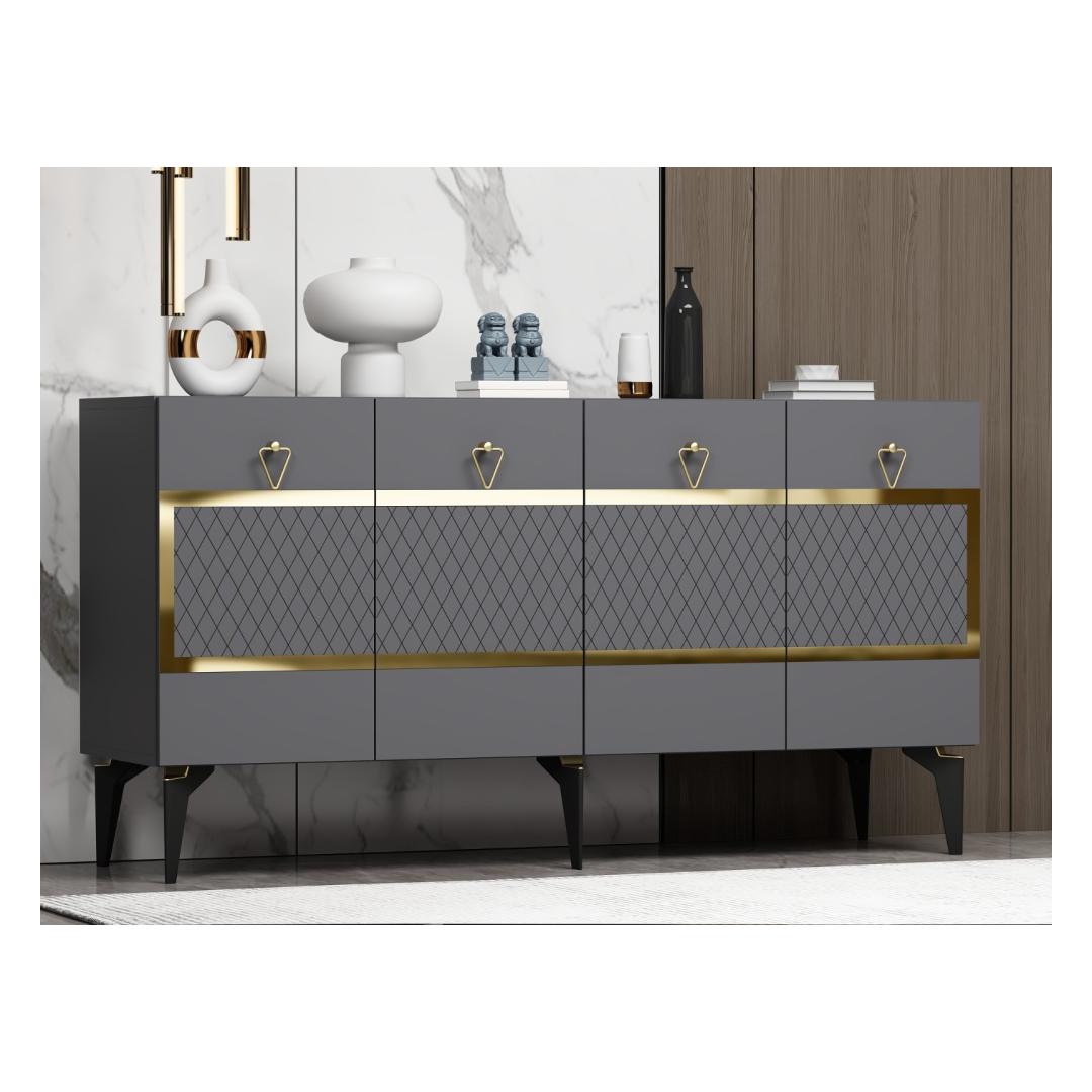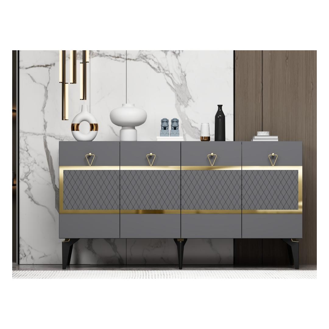 Tutvustame meie suurepärast ja lummavat antratsiidi ja kulla värvi konsooli, mis on tõeline meistriteos, mis tõstab iga ruumi atmosfääri. Vabastage elegantsi jõudAstuge meie antratsiidi ja kuldse konsooliga keerukuse ja luksuse maailma. See konsool on valmistatud ülima hoole ja tähelepanuga detailidele ning see on loodud selleks, et anda endast märku. Selle elegantne ja modernne siluett koos antratsiidi ja kulla värvi silmatorkava kombinatsiooniga loob õilsuse aura, mis on lihtsalt vastupandamatu.A touch of glamourAntratsiit-kuldne konsool on rohkem kui lihtsalt mööblitükk; see on kunstiteos, mis õhkab elegantsi ja võlu. Selle 100% melamiiniga kaetud puitlaastplaadi konstruktsioon tagab vastupidavuse ja pikaealisuse, samas kui 18 mm paksus lisab tugevust, mis peab vastu. Transformeeri oma ruumiOlenemata sellest, kas paigutate selle oma elutuppa, koridori või magamistuppa, muudab meie konsool iga ruumi koheselt stiili ja rafineerituse paradiisiks. Suurepärased mõõtmed (150 cm laius, 79 cm kõrgus ja 40 cm sügavus) pakuvad piisavalt ruumi teie hädavajalike asjade hoidmiseks, säilitades samal ajal elegantse ja voolujoonelise välimuse. Tehnilised üksikasjad:Tootetüüp: Toode on mõeldud kasutamiseks, kui see ei ole vajalik, kuid see on võimalik: KonsoolMaterjal: Materjal: Materjal: Materjal: Materjal: Materjal: Materjal: Materjal: materjal: 100% melamiiniga kaetud puitlaastplaatPaksus: 18mmLaius: 150cmKõrgus: 79cmSügavus: 40cmVärv: antratsiit ja kuldHellitage meie antratsiidi ja kuldse konsooli võlu ja kogege funktsionaalsuse ja elegantsi täiuslikku segu. Tõstke oma ruumi esile ja jätke selle lummava esemega püsiv mulje. Tellige kohe ja laske lummusel alata! Värv: Anthracite Gold