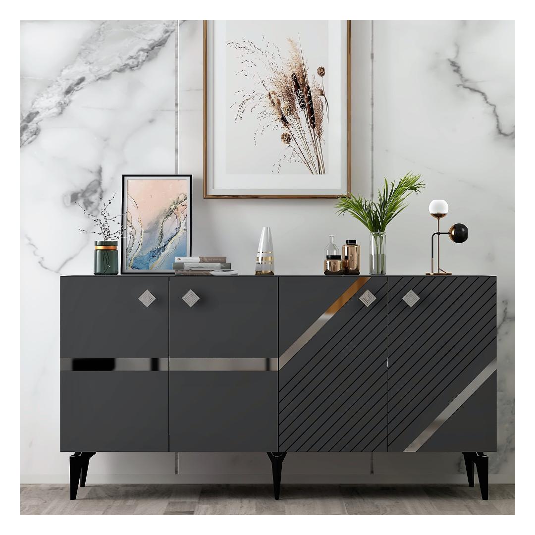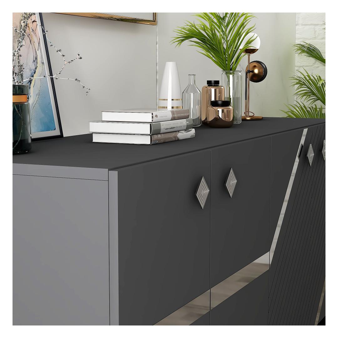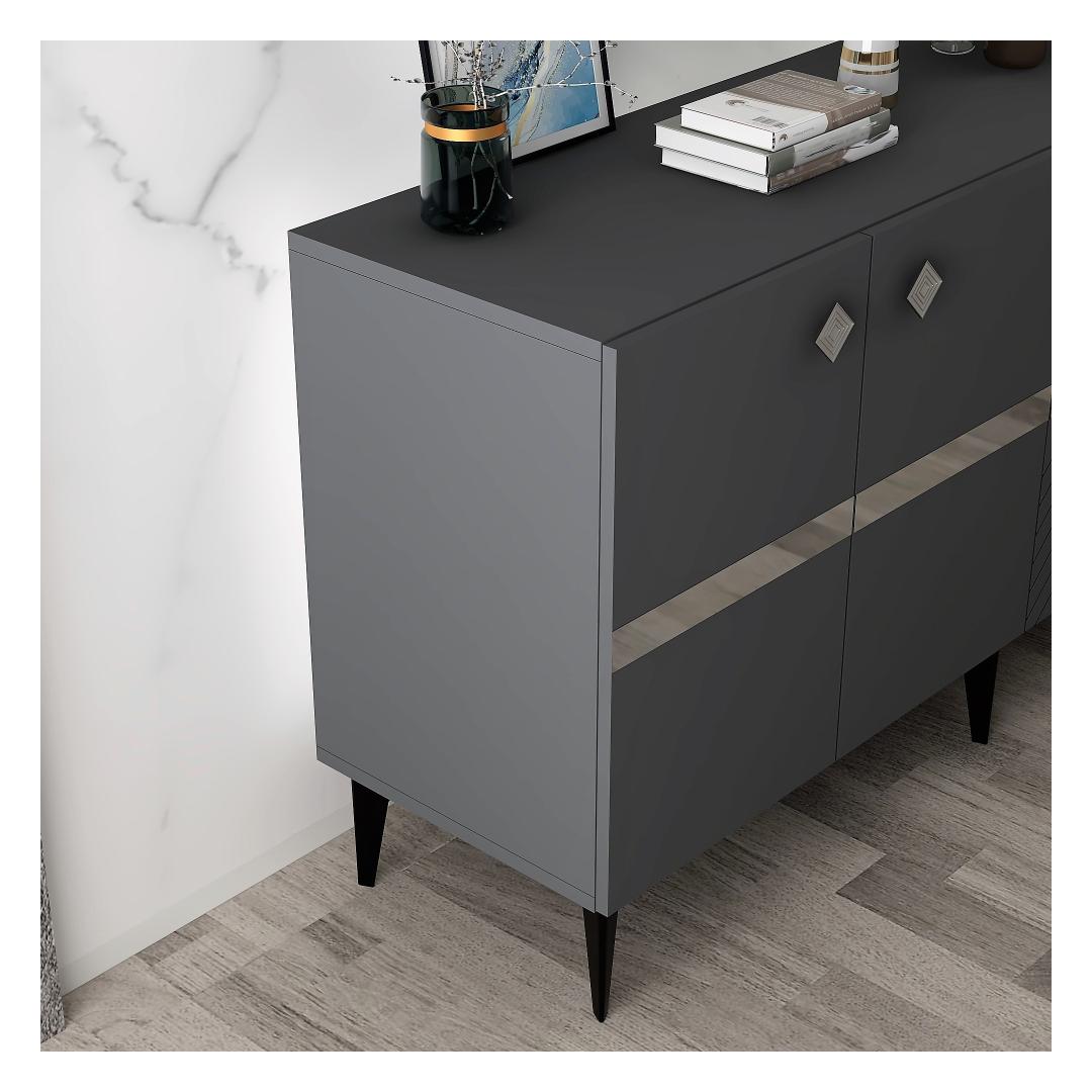 Tutvustame elegantset ja moodsat antratsiidi ja hõbeda värvi konsooli, mis on kohustuslik ese igasse kaasaegsesse koju. See konsool ei ole lihtsalt mööblitükk, see on stiili- ja rafineeritud avaldus. Elegantne disain moodsasse kojuAntratsiidi ja hõbedase konsooli eesmärk on oma puhaste joonte ja keerulise värvikombinatsiooniga tõsta teie eluruumi esile. Antratsiidi ja hõbeda kontrastsed värvid loovad silmatorkava visuaalse efekti, mis koheselt uuendab iga ruumi. Kvaliteetne käsitöö vastupidavuse tagamiseksSee 100% melamiiniga kaetud puitlaastplaadist valmistatud konsool on valmistatud kestma. 18 mm paksus tagab tugevuse ja vastupidavuse, mis teeb sellest praktilise ja pikaajalise investeeringu teie koju. Monitoorne ja funktsionaalneSee 150 cm laiune, 40 cm kõrge ja 79 cm sügavune konsool pakub piisavalt ruumi kõigi oluliste asjade hoidmiseks. Kas te kasutate seda elutoas, koridoris või magamistoas, see sobitub vaevata iga sisustusstiiliga. Tehnilised üksikasjad:Materjal: Materjal: Materjal: Materjal: Materjal: Materjal: Materjal: Materjal: materjal: 100% melamiiniga kaetud puitlaastplaatPaksus: 18mmMõõdud: Paneel on mõõdetud nii, et see ei ole liiga suur: 150cm (laius) x 40cm (kõrgus) x 79cm (sügavus): 150cm (laius) x 40cm (kõrgus) x 79cm (sügavus)Värv: antratsiit ja hõbedane Värv: Anthracite Silver