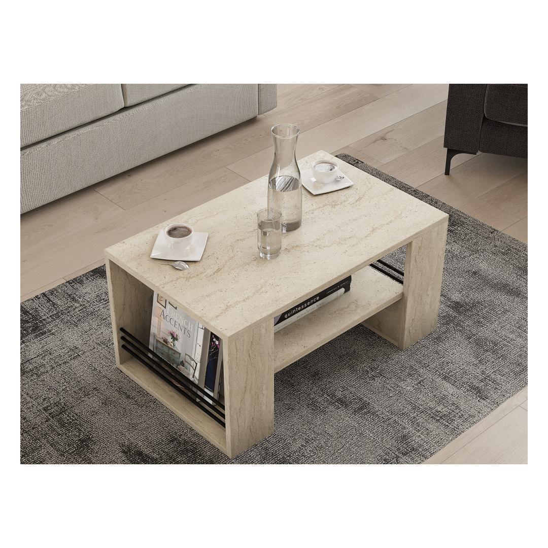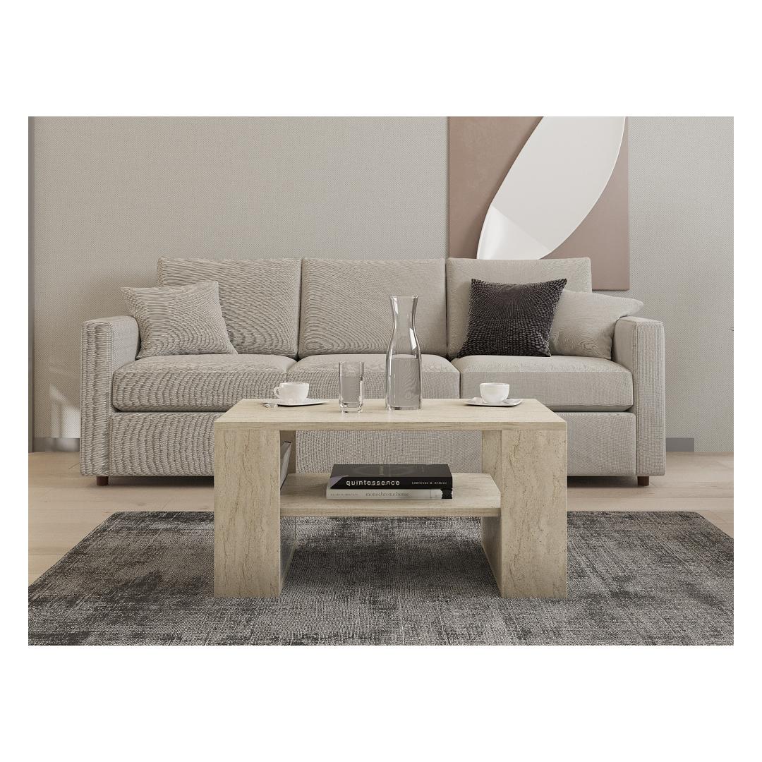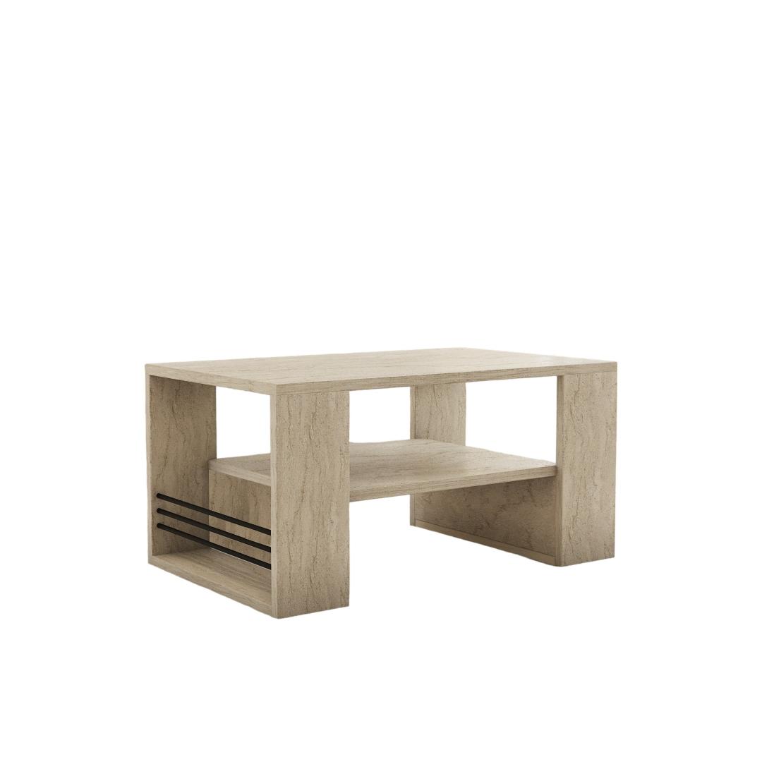 Muuda oma elutuba hubaseks ja stiilseks pelgupaigaks meie suurepärase travertiinist kohvilauda abil. See 100% melamiiniga kaetud puitlaastplaadist valmistatud kohvilaud õhkab elegantsust ja elegantsust. Travertiini värv lisab igasse ruumi luksust, muutes selle teie kodu täiuslikuks keskpunktiks.