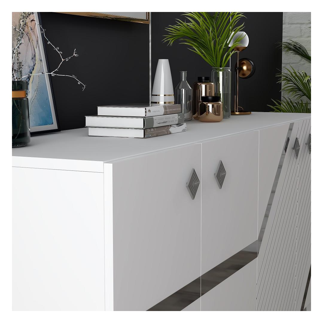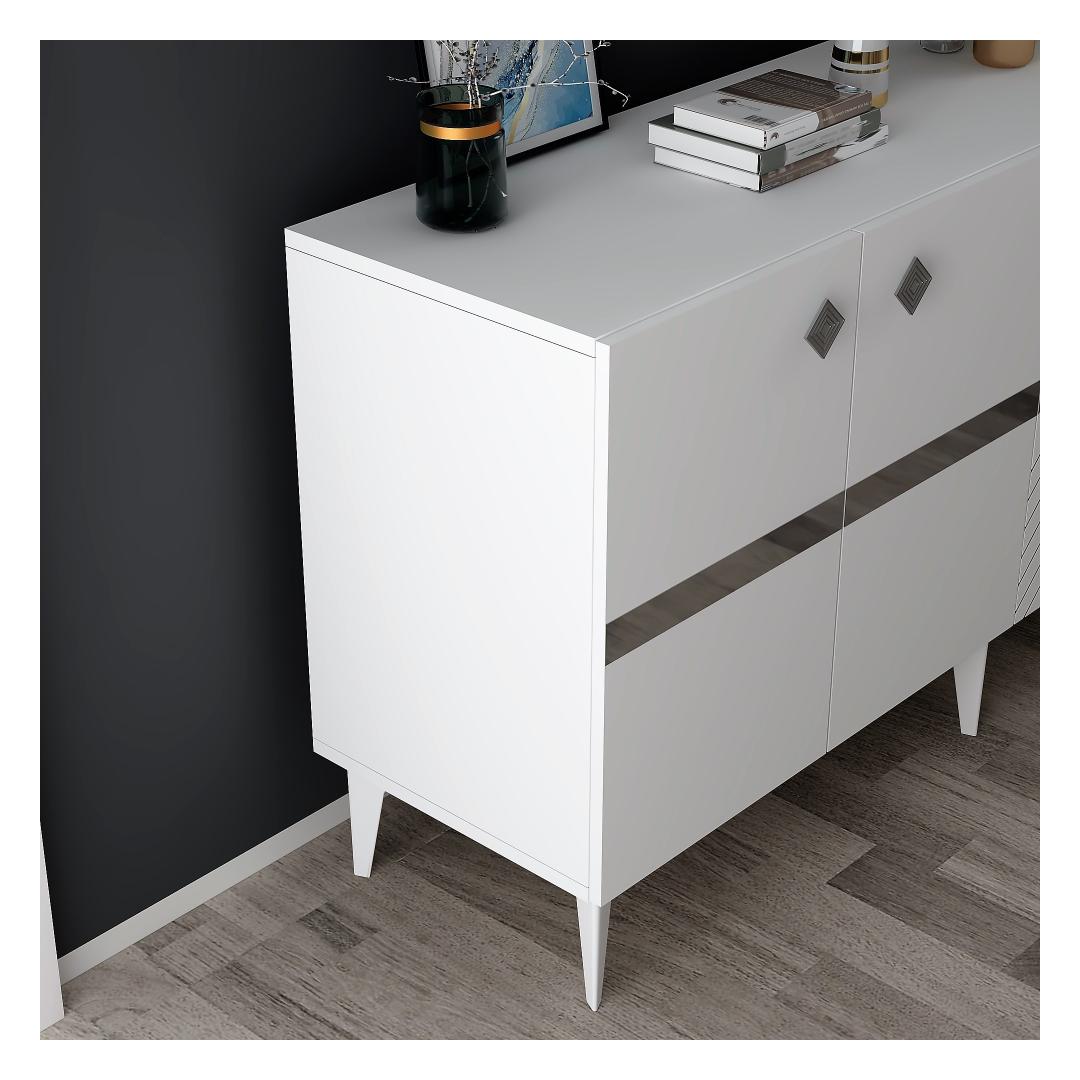 Muuda oma eluruum meie uimastava konsooliga, mis on valmistatud 100% melamiiniga kaetud puitlaastplaadist, mis tagab vastupidavuse ja stiilsuse. Valge ja hõbedase värviga elegantse disainiga konsool tõstab koheselt mis tahes ruumi välimust, lisades sellele elegantsi ja elegantsi. Tõstke oma ruumiLisage oma koju kaasaegset elegantsi selle stiilse konsooliga, mis sobib ideaalselt teie lemmikdekoratsioonide eksponeerimiseks või oluliste esemete hoidmiseks. Puhtad jooned ja puhas viimistlus sobivad igasse sisustusstiili, alates kaasaegsest kuni traditsioonilise sisekujundamiseni. Kvaliteetne käsitööSee 18 mm paksust melamiiniga kaetud puitlaastplaadist valmistatud konsool on ehitatud nii, et see kestab aastaid. Tugev konstruktsioon tagab stabiilsuse ja vastupidavuse, muutes selle teie kodu praktiliseks ja stiilseks täienduseks. Muudatlik disain150 cm laiuse, 40 cm kõrguse ja 79 cm sügavuse mõõtmetega konsool sobib ideaalselt igasse ruumi. Kas kasutate seda elutoas, koridoris või magamistoas, see lisab teie ruumile elegantsust ja funktsionaalsust. Tehnilised üksikasjad:Materjal: Materjal: Materjal: Materjal: Materjal: Materjal: Materjal: Materjal: materjal: 100% melamiiniga kaetud puitlaastplaatPaksus: 18mmMõõdud: Paneel on mõõdetud nii, et see ei ole liiga suur: 150cm (laius) x 40cm (kõrgus) x 79cm (sügavus): 150cm (laius) x 40cm (kõrgus) x 79cm (sügavus)Värv: valge ja hõbedane Värv: White Silver