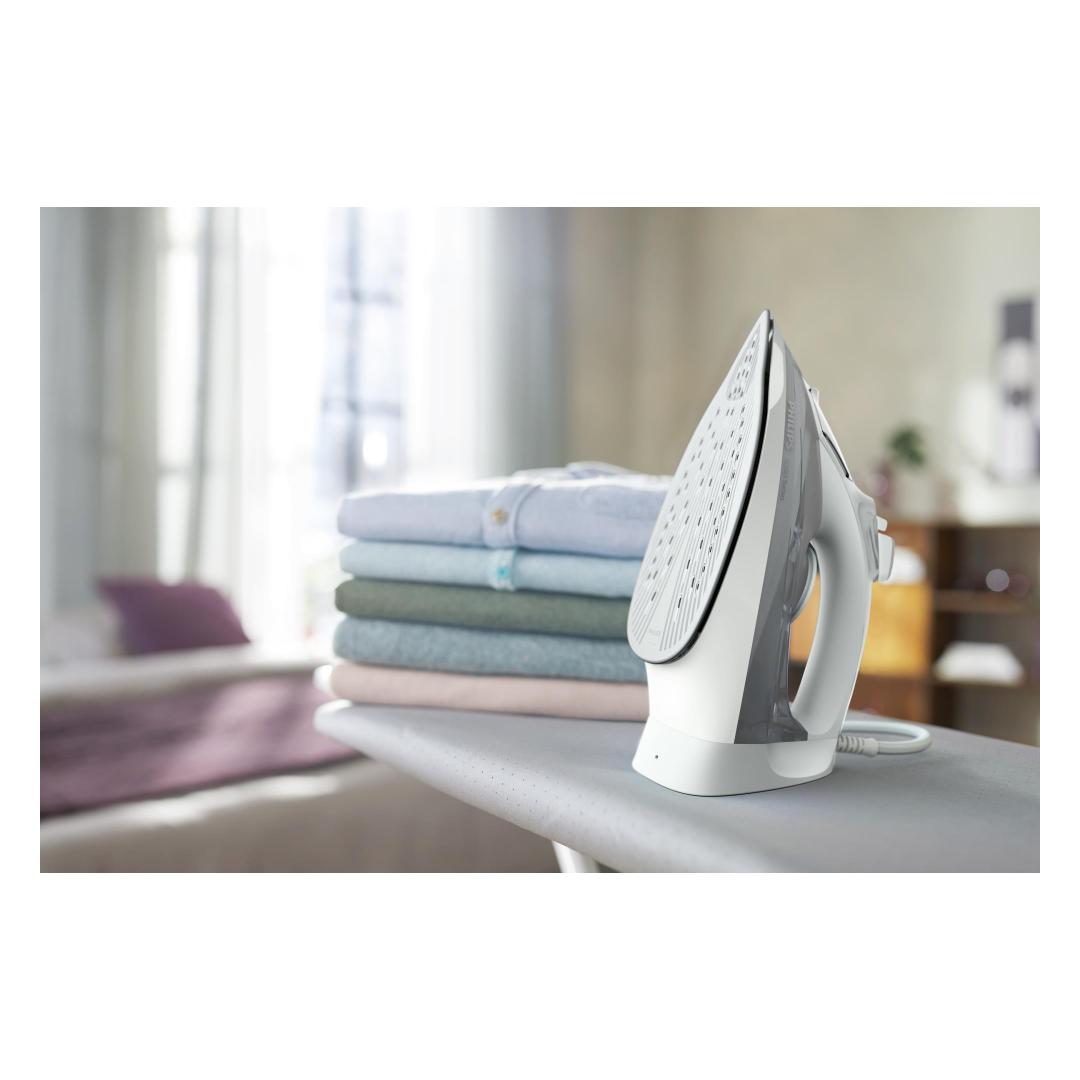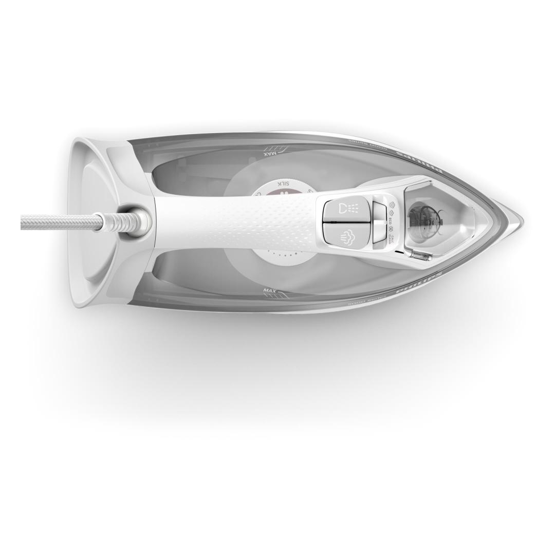 Philips 5000 series DST5010/10. Type: Steam iron, Soleplate type: SteamGlide Plus soleplate, Cord length: 2 m. Iron power: 2400 W. Width: 312 mm, Depth: 127 mm, Height: 147 mm. Package width: 332 mm, Package depth: 137 mm, Package height: 167 mm. Warranty period: 2 year(s)