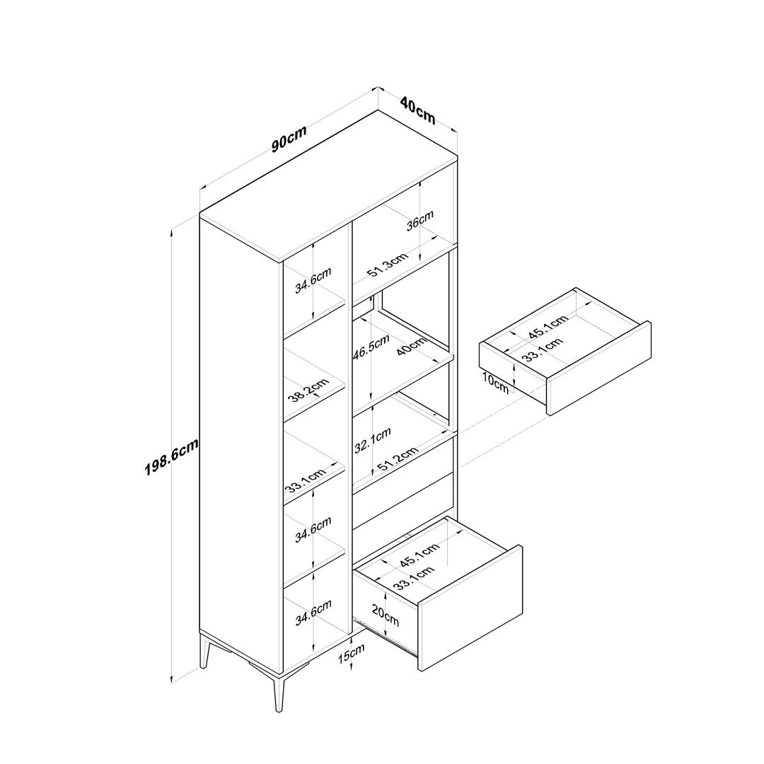 Laius 90 cm, kõrgus 198. 6cm ja sügavus 40cm, pakub see kapp piisavalt ruumi kõigi teie asjade hoidmiseks. Alates raamatutest ja fotoalbumitest kuni rõivaste ja aksessuaarideni saate lõpuks ometi hoida kõike korrastatult ja käeulatuses. Reguleeritavad riiulid võimaldavad teil kohandada sisekujundust vastavalt oma vajadustele.