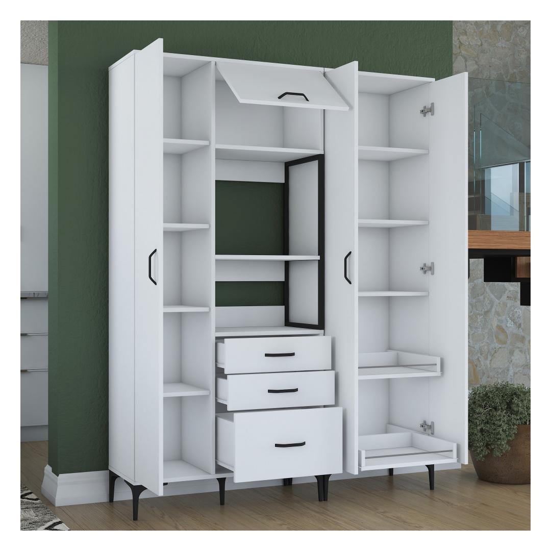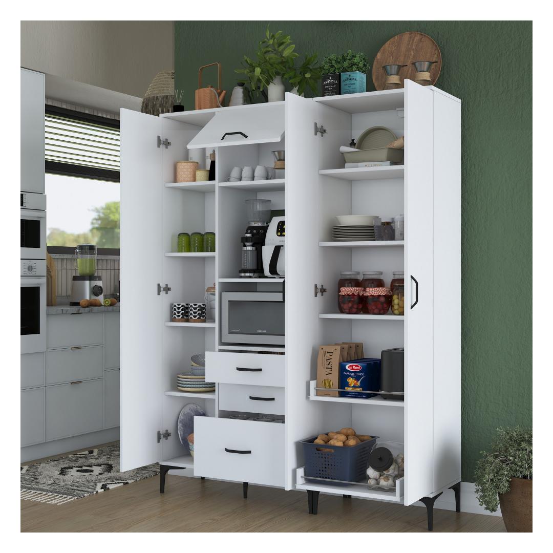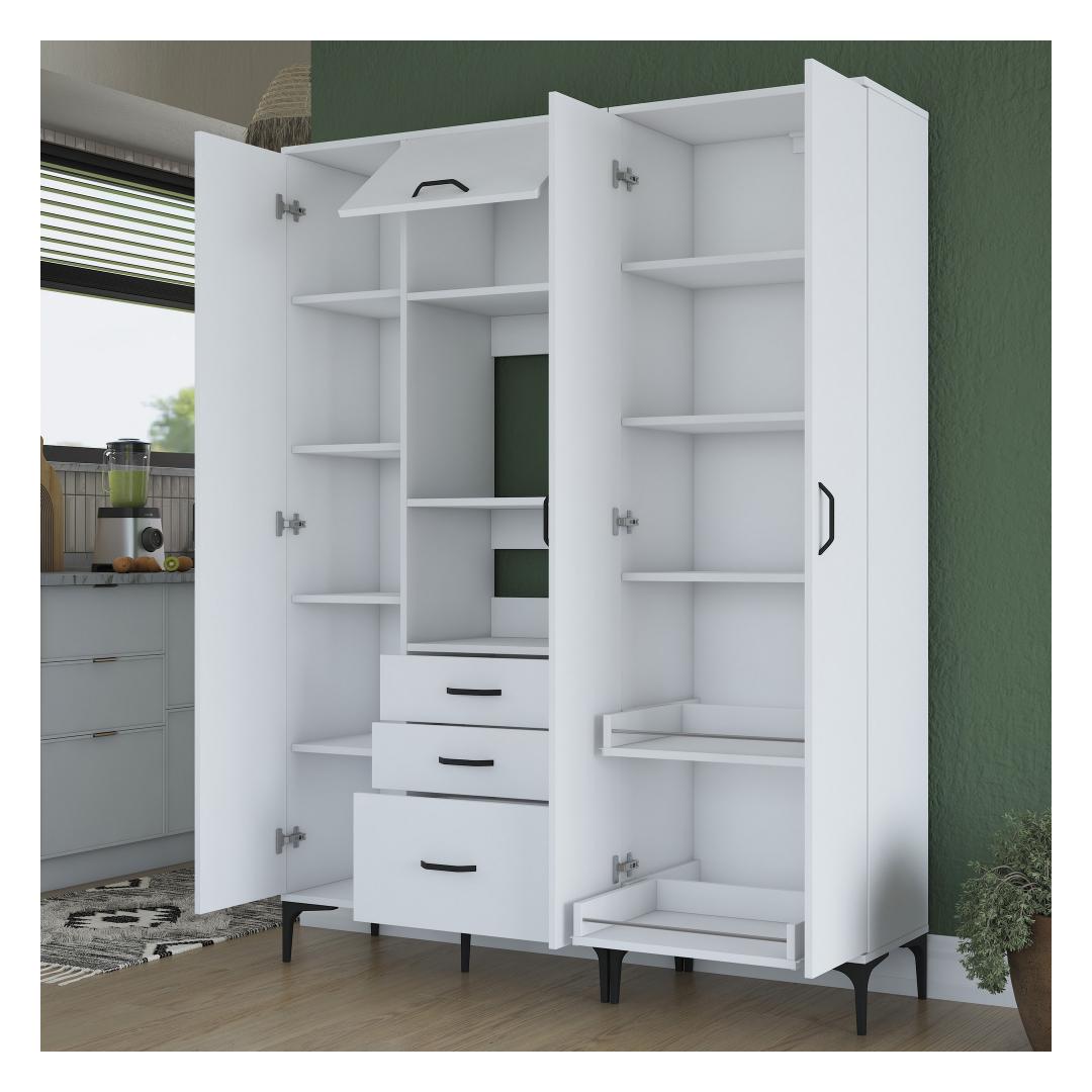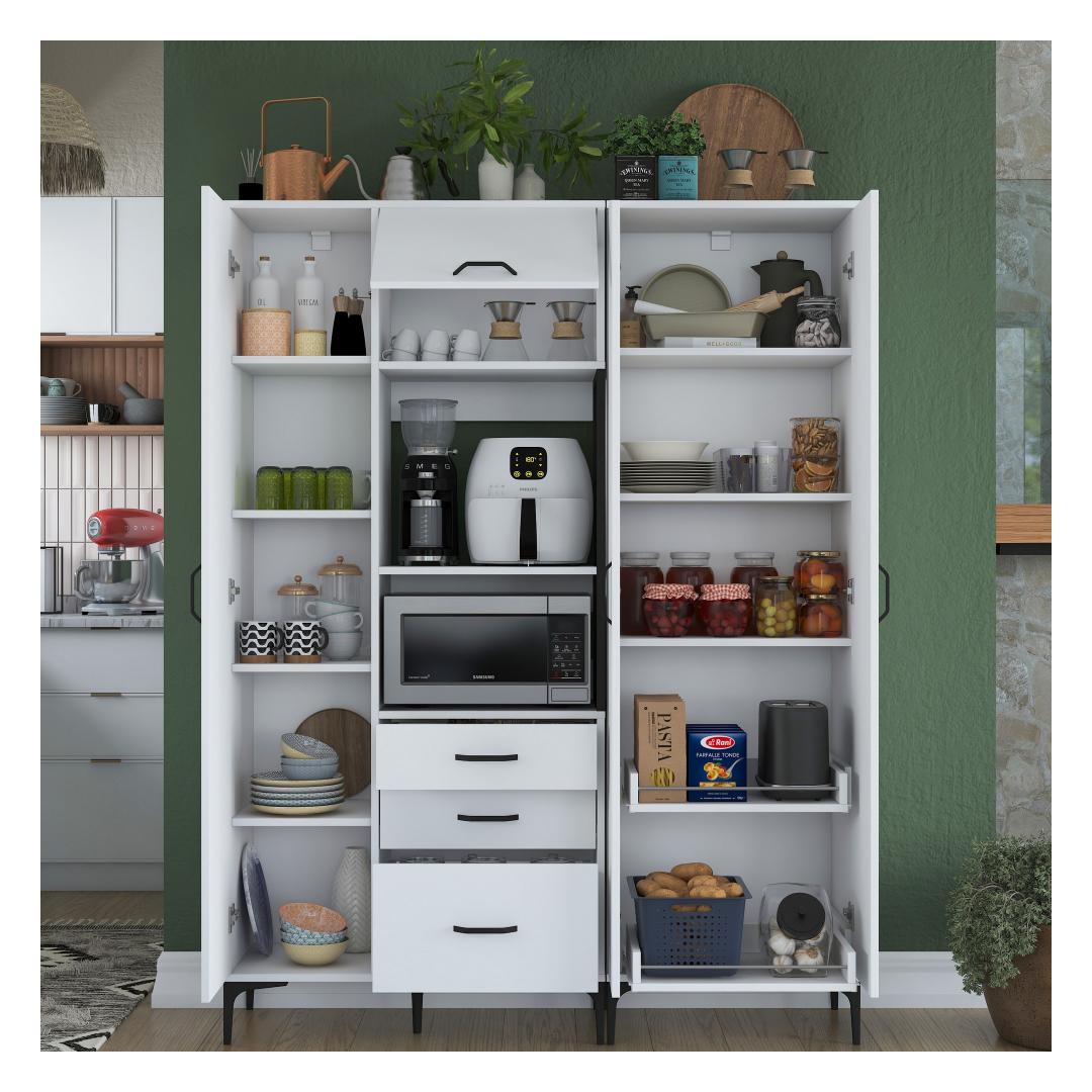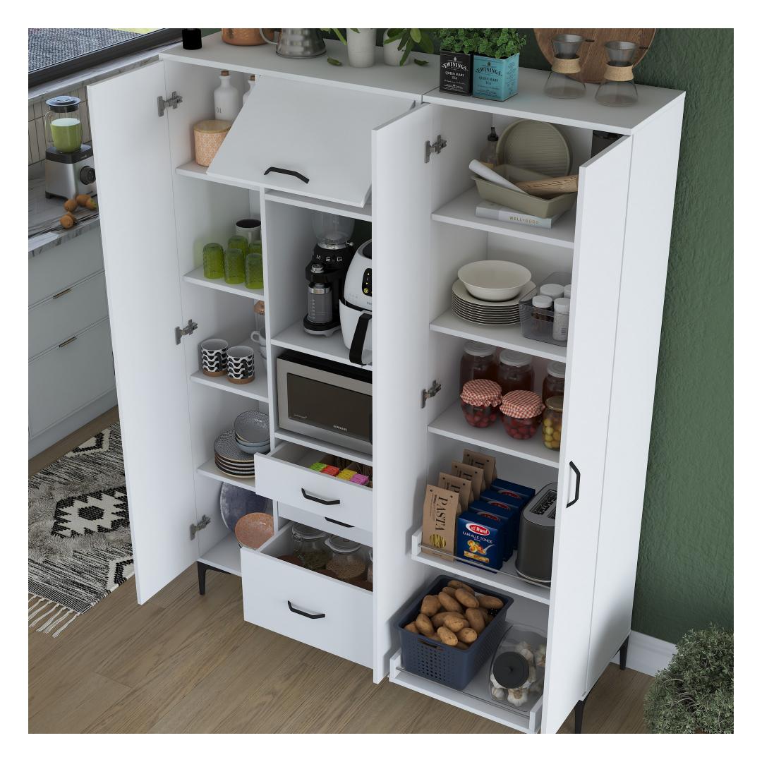 Meie ülima täpsusega valmistatud mitmeotstarbeline kapp on valmistatud 100% melamiiniga kaetud e1-kvaliteediga puitlaastplaadist. See tagab vastupidavuse ja pikaealisuse, mis võimaldab teil nautida selle eeliseid aastaid. Kapi stiilne disain ja valge(d) värv(id) sobituvad vaevata mis tahes interjööriga, lisades teie ruumile elegantsi.