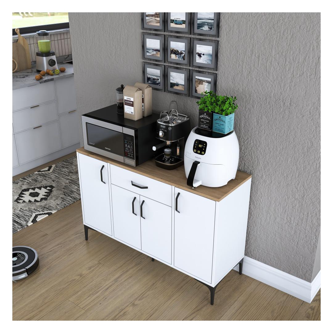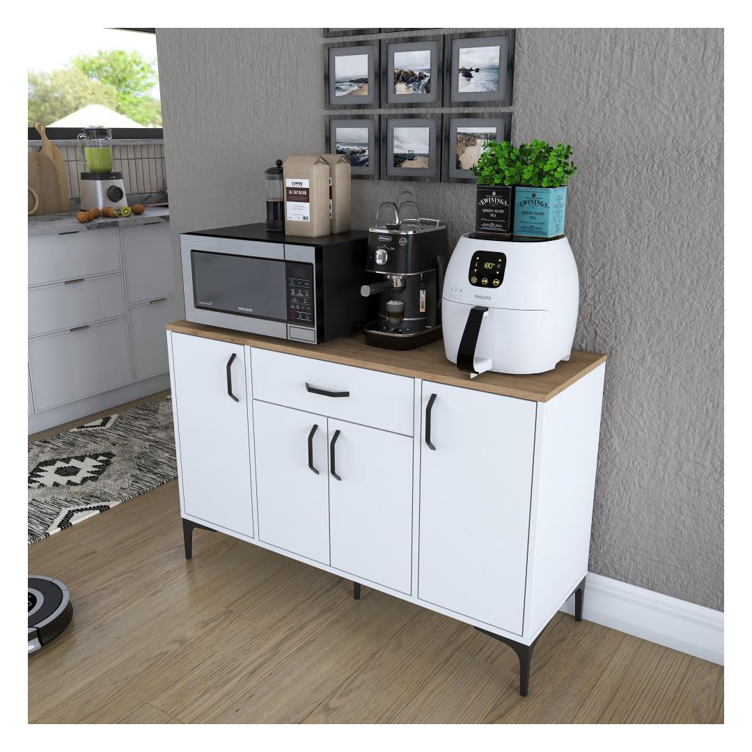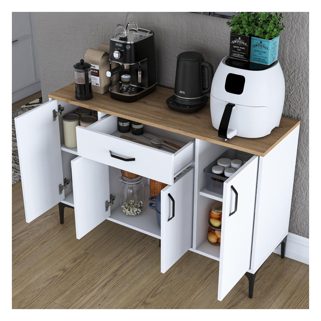 Öelge räpaste tubadega hüvasti ja tere meie mitmeotstarbelise kapiga kaunilt organiseeritud ruumi. Oma klanitud disaini ja moodsate valgete ja kreeka pähklite värvivalikutega sulandub see kapp sujuvalt mis tahes sisekujunduse stiiliga.