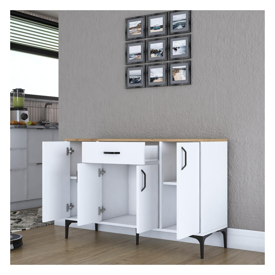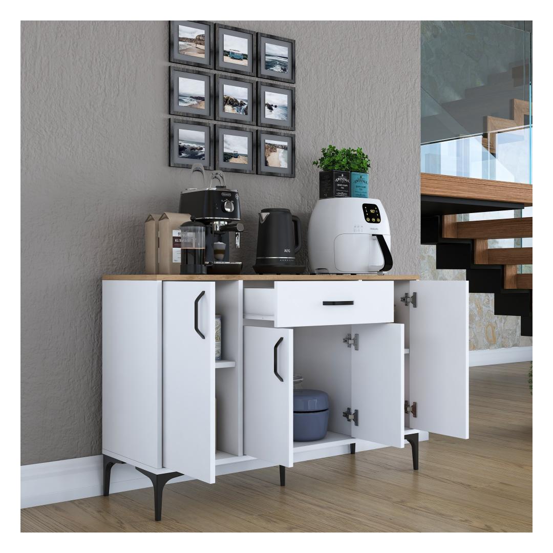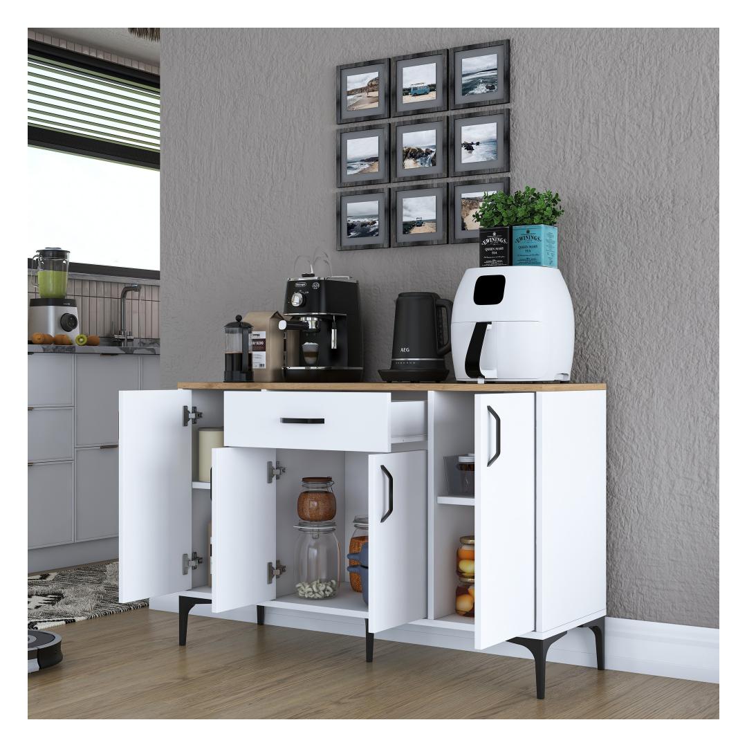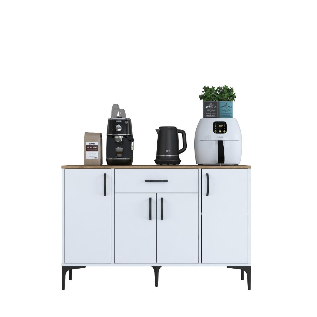 Öelge räpaste tubadega hüvasti ja tere meie mitmeotstarbelise kapiga kaunilt organiseeritud ruumi. Oma klanitud disaini ja moodsate valgete ja kreeka pähklite värvivalikutega sulandub see kapp sujuvalt mis tahes sisekujunduse stiiliga.