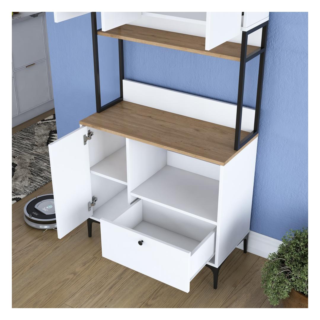 Valge ja pähkli värvikombinatsioon lisab igale ruumile kaasaegse ja keeruka puudutuse. Ükskõik, kas asetate selle oma elutuppa, magamistuppa või kontorisse, sulandub see kapp sujuvalt teie olemasoleva sisekujundusega.