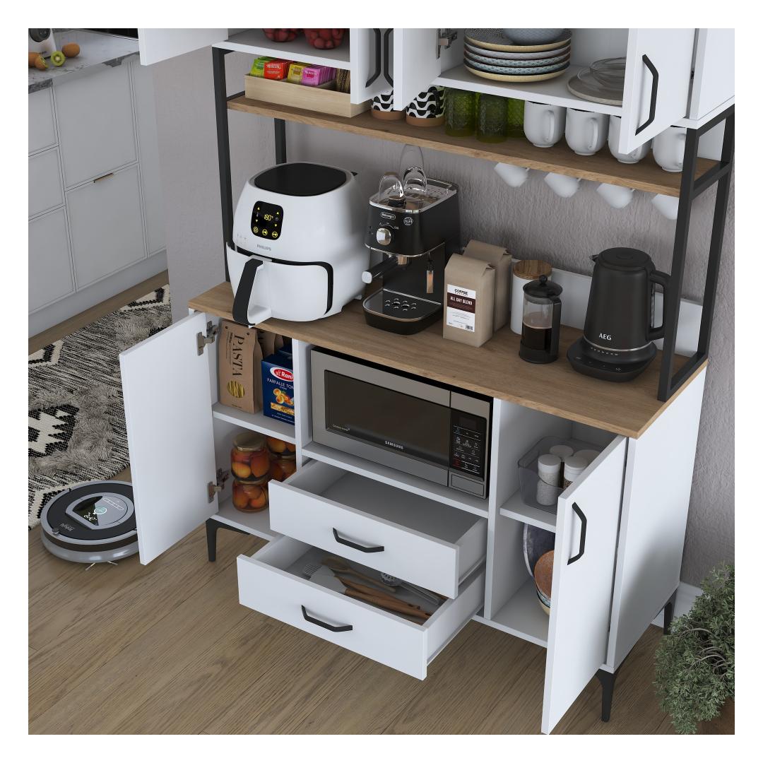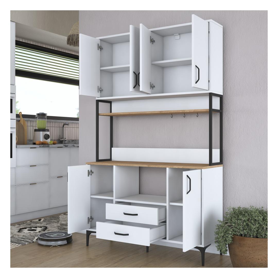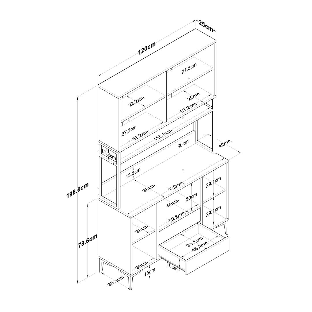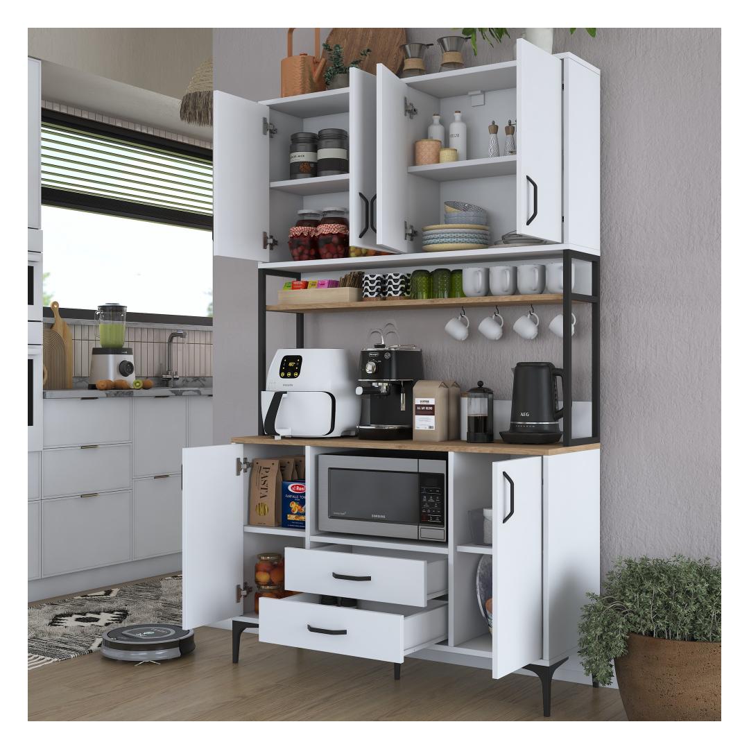 Ütle hüvasti segastele tubadele ja tere kaunilt korraldatud ruumile meie mitmeotstarbelise kapiga. Paljude riiulite ja mugava sahtliga saad hõlpsasti ladustada ja juurde pääseda kõigile oma olulistele asjadele. Sujuv disain ja kaasaegne pähkli ja valge värvikombinatsioon täiendab igasugust sisustust, muutes selle stiilseks lisandiks sinu koju.