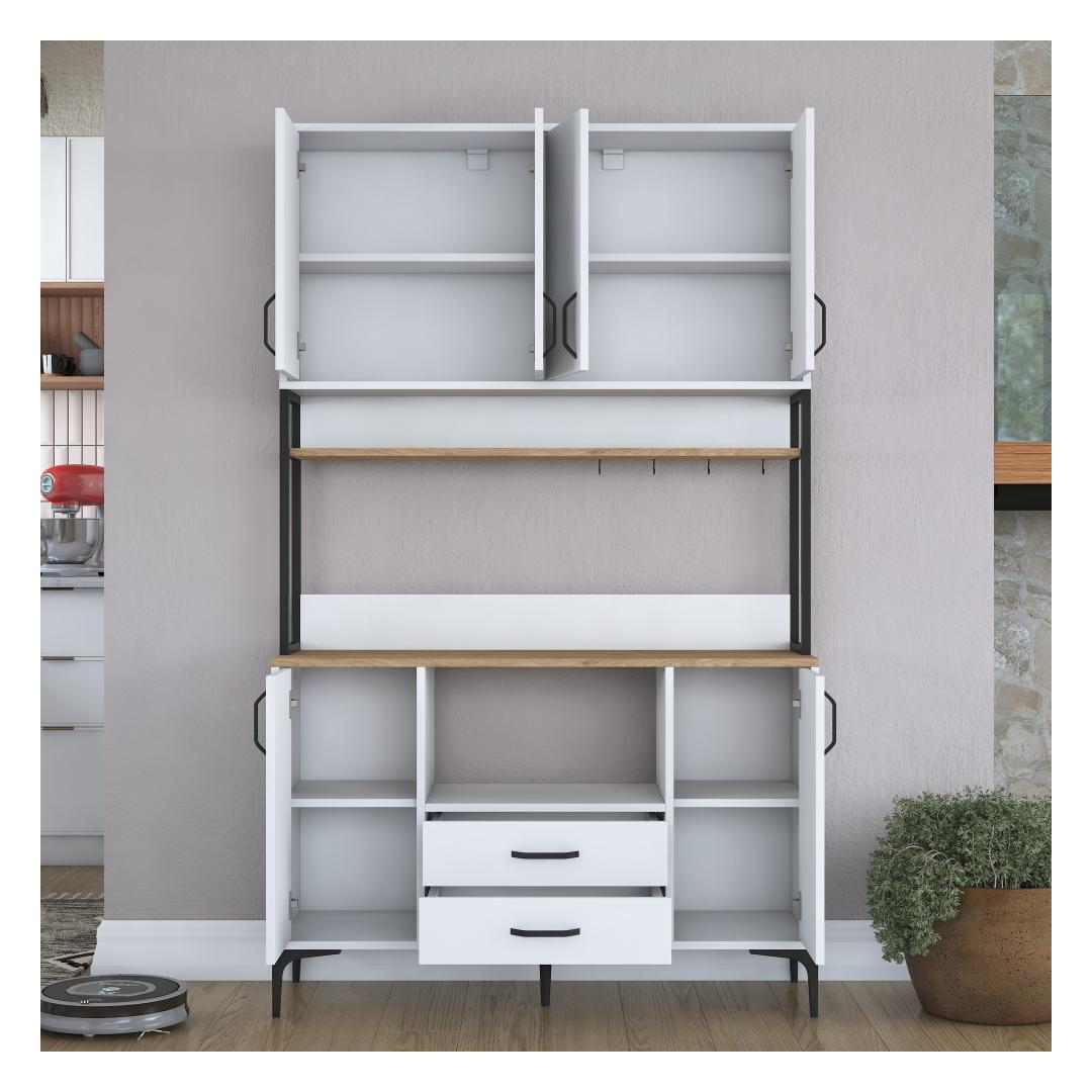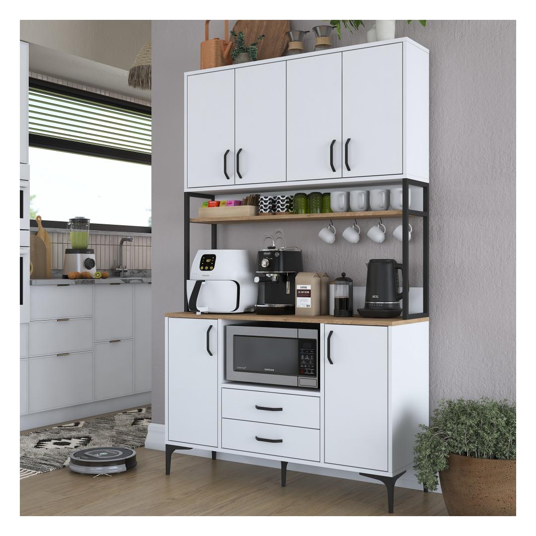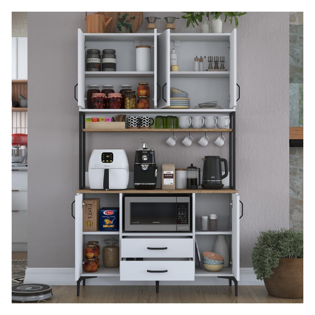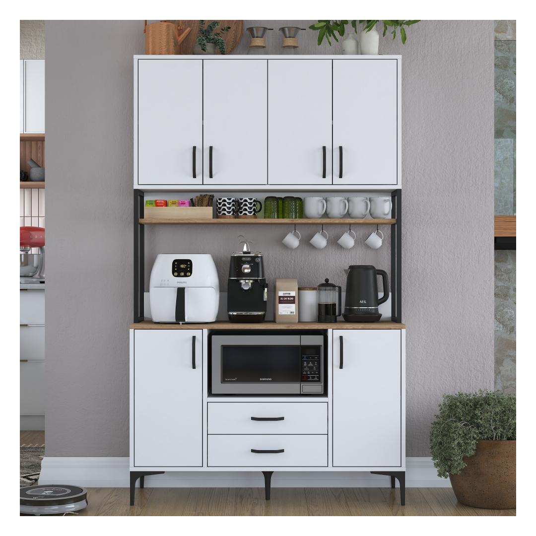 Ütle hüvasti segastele tubadele ja tere kaunilt korraldatud ruumile meie mitmeotstarbelise kapiga. Paljude riiulite ja mugava sahtliga saad hõlpsasti ladustada ja juurde pääseda kõigile oma olulistele asjadele. Sujuv disain ja kaasaegne pähkli ja valge värvikombinatsioon täiendab igasugust sisustust, muutes selle stiilseks lisandiks sinu koju.