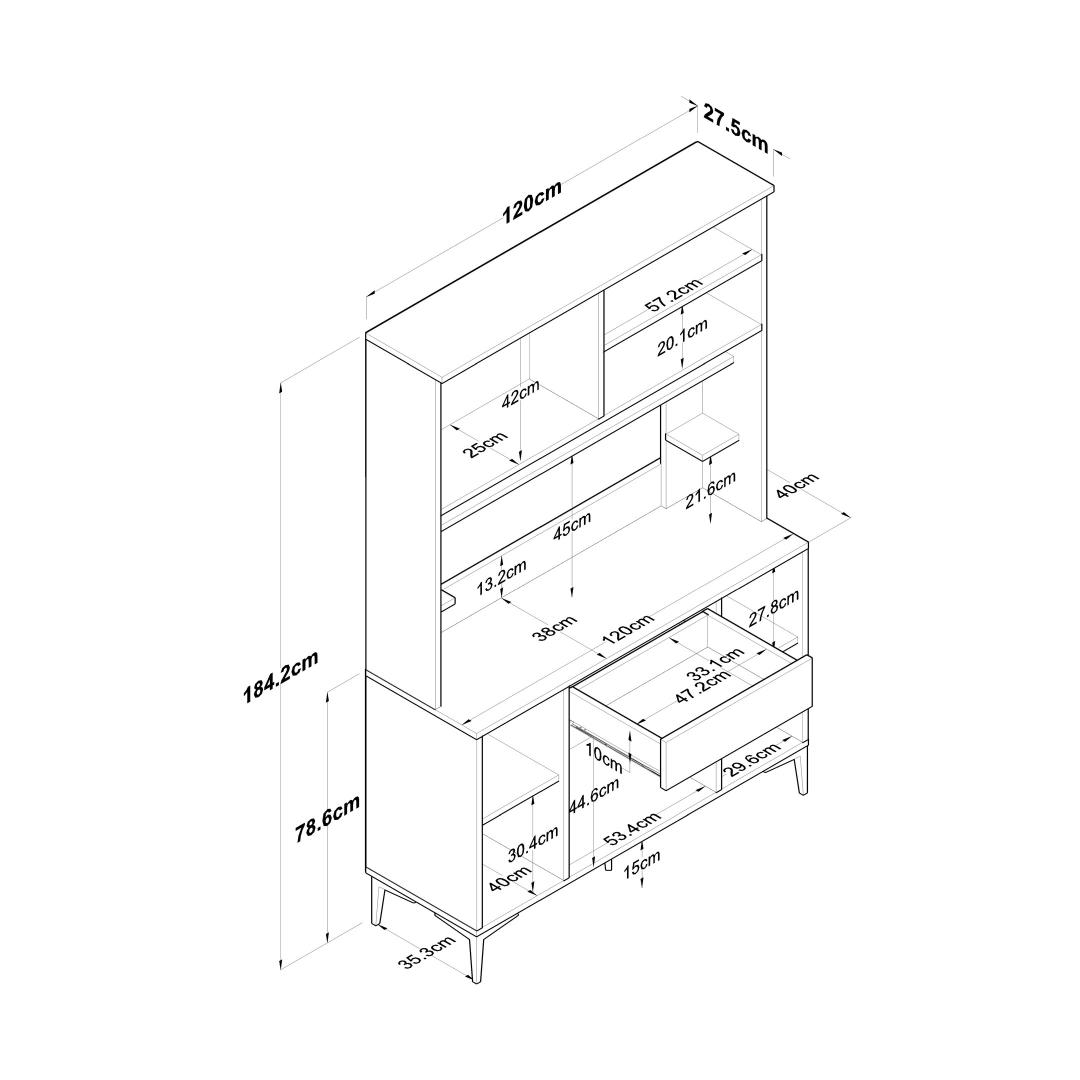Kapp mõõdab 120 cm laiust, 184,2 cm kõrgust ja 40 cm sügavust, pakkudes piisavalt ladustamisruumi kõigi sinu asjade jaoks. Rohked riiulid ja 1 sahtel pakuvad piisavalt ruumi sinu esemetele, samas kui võimalus see seina kinnitada lisab stabiilsust ja turvalisust.