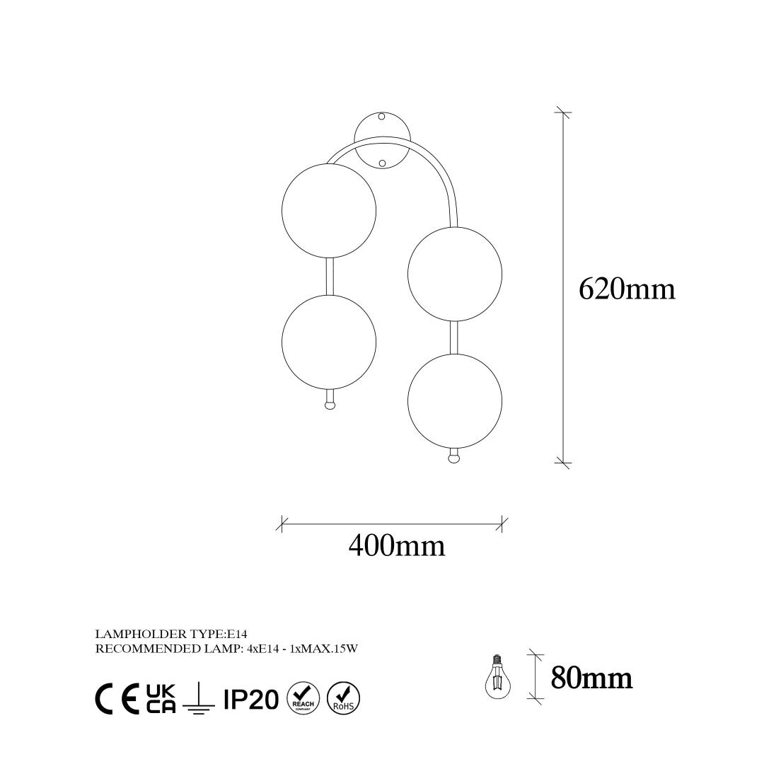 Valgustage oma ruumi elegantsi ja stiiliga meie hämmastava seinalambiga. See kaunis ese omab sujuvat metallkorpust luksusliku klaaskattega, luues rafineeritud ja modernse ilme, mis tõstab esile iga toa teie kodus. Kuldne värv lisab veidi glamuurit, samas kui ainulaadne disain toob teie dekoreerimisse värskuse ja innovatsiooni.Elegantne disainSeinalamp on varustatud metallist aluspaneeli ja klaaskattega, luues kauni kontrasti, mis köidab igaühe tähelepanu, kes ruumi siseneb. Sujuvad jooned ja kaasaegne disain teevad sellest eseme ideaalse lisandi igasse kaasaegsesse või Skandinaavia stiilis ruumi.Mitmekesine valgustusKokku kõrgus 62 cm ja katte diameeter 15 cm, see lamp pakub piisavalt valgust, lisades samas stiili teie seintele. Aluspaneeli diameeter 12 cm ja kõrgus 3 cm tagavad stabiilsuse ja vastupidavuse, muutes selle lambi praktiliseks ja stiilseks valikuks igas toas.Lihtne paigaldadaSeinalamp on loodud lihtsaks paigaldamiseks, nii et saate nautida selle ilu ja funktsionaalsust kiiresti. Lihtsalt kinnitage see oma seinale ja ühendage see vooluvõrku, et alustada sooja ja kutsuva kuma nautimist, mida see pakub.Tehnilised andmed:Suurus: 40 x 26 cmIP20 hinnatud siseruumides kasutamiseksPesatüüp: 4 x E14 Max 15WVärv: KuldKontseptsioon: Kaasaegne - Uudsus, Glamuur, Skandinaavia Värv: Gold